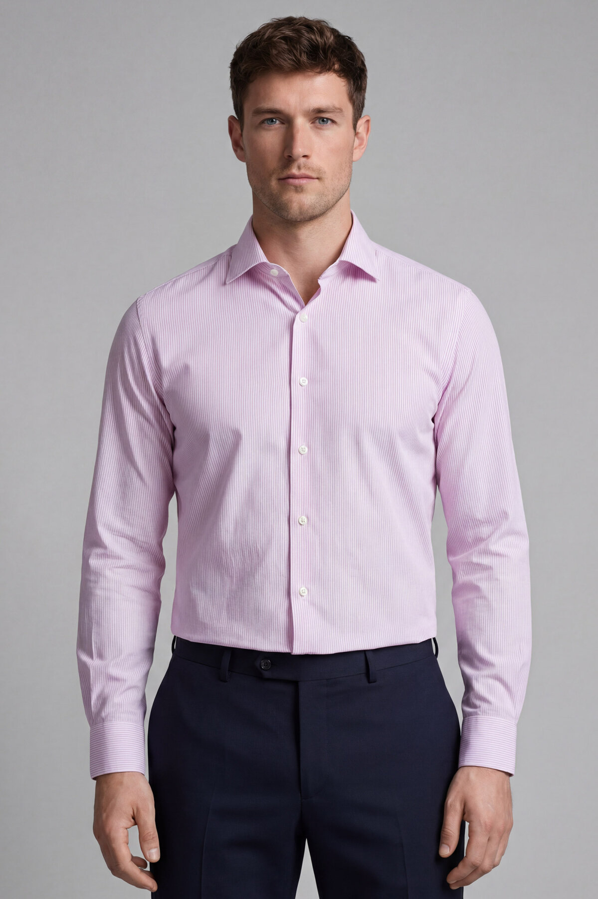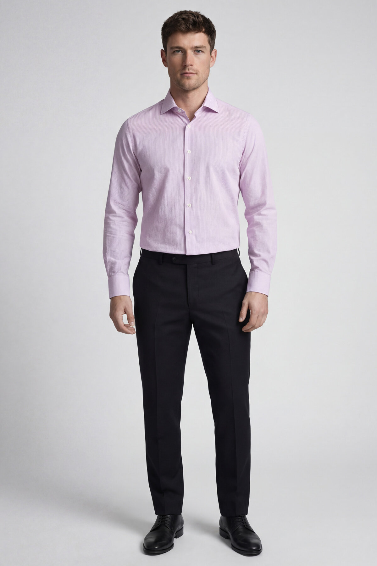 Regular Fit Uzun Kol Cepsiz Pamuk Lila Erkek Gömlek