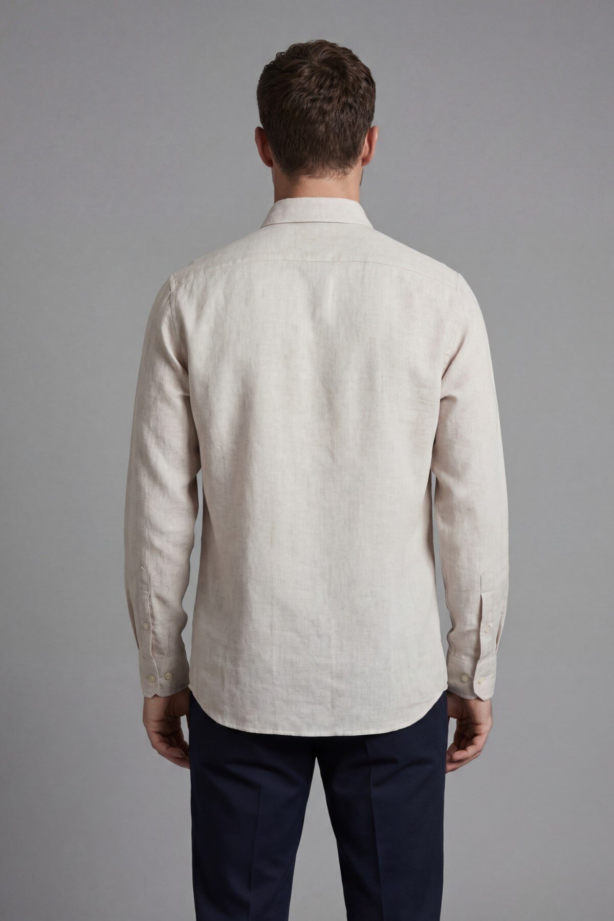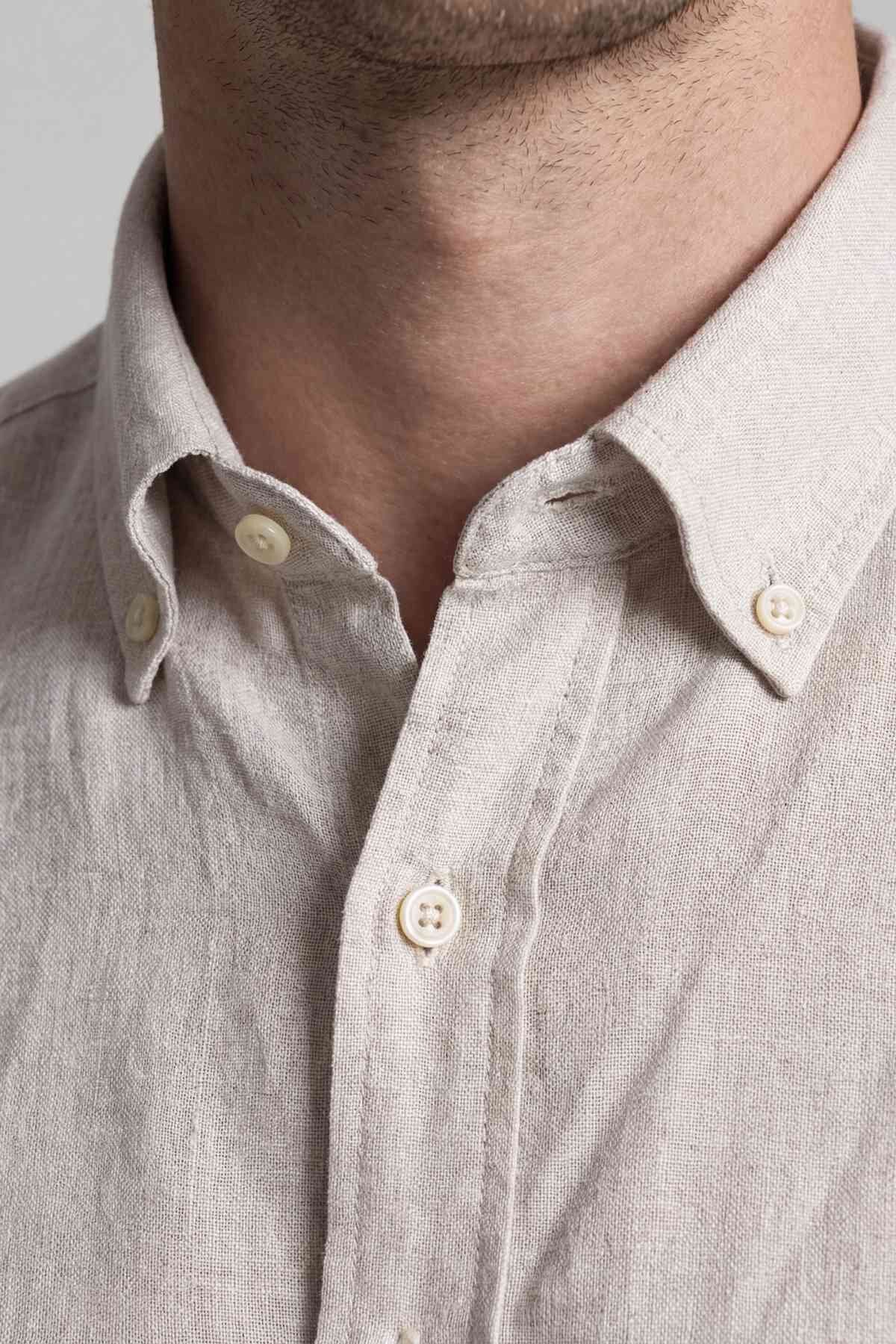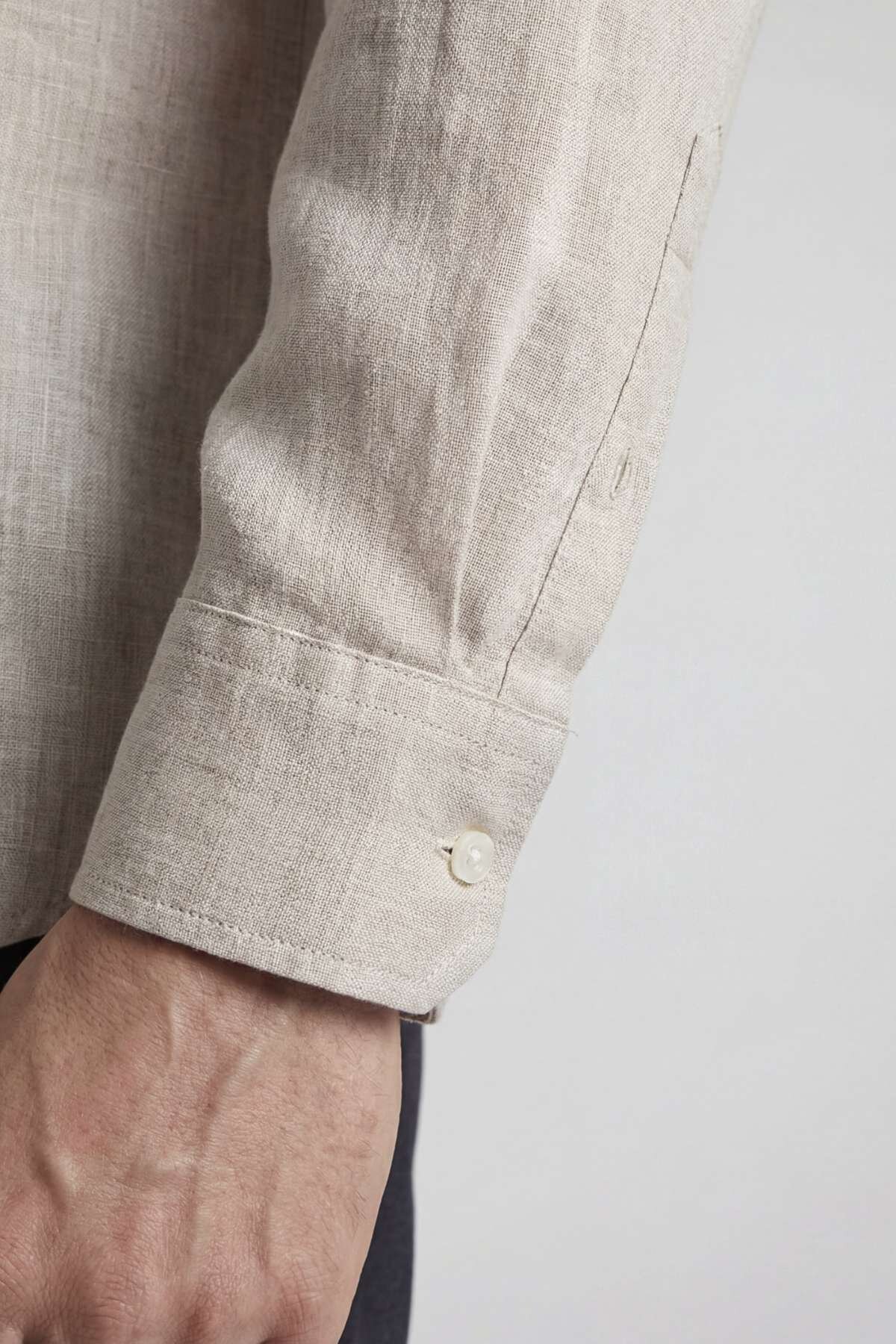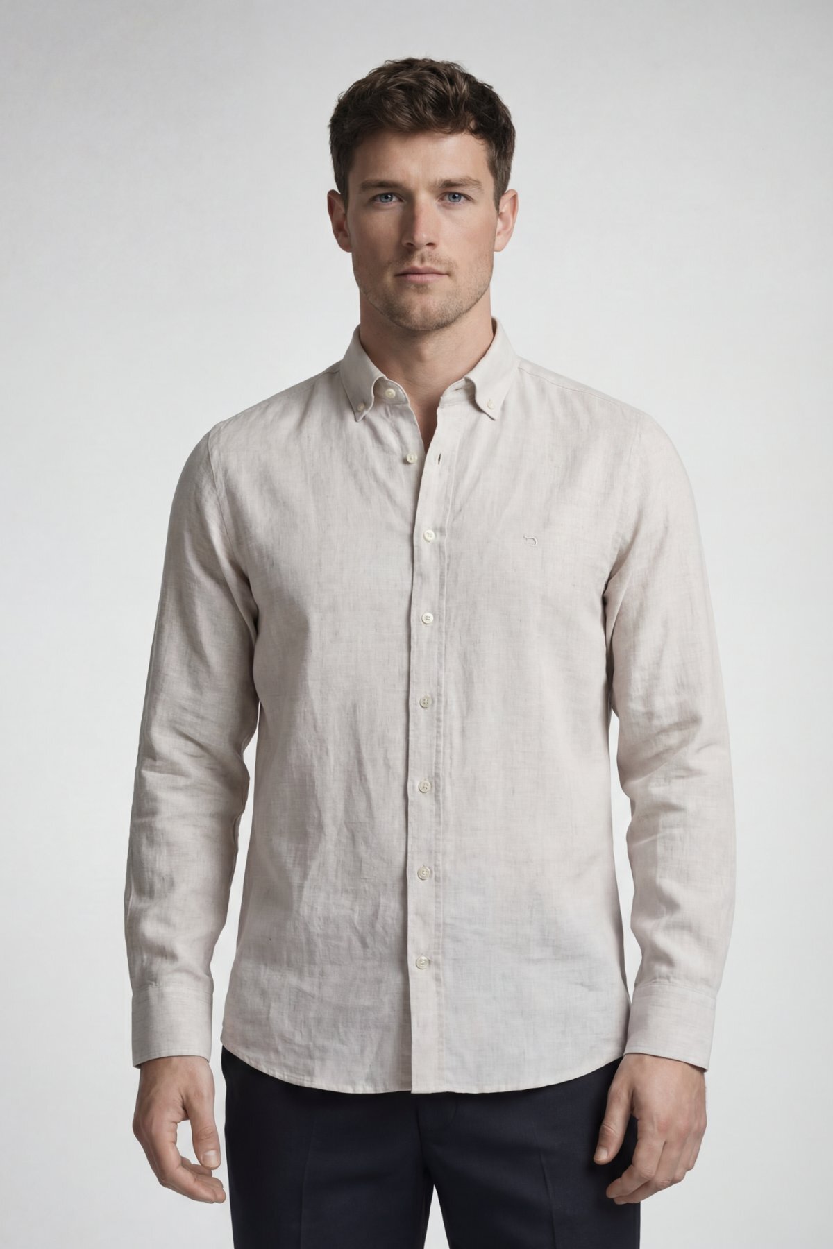 Regular Fit Uzun Kol Keten Paşa Yaka Bej Erkek Gömlek