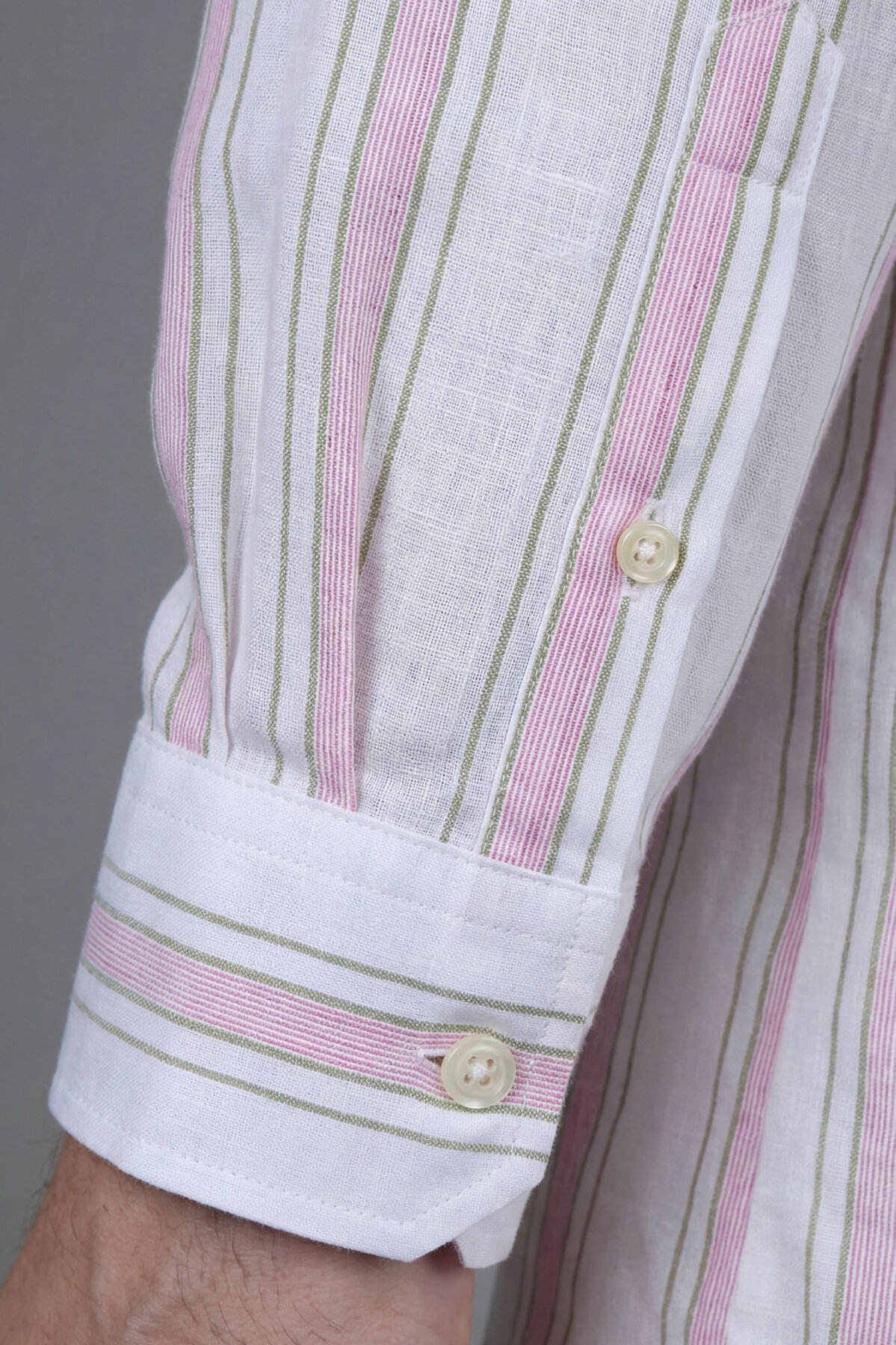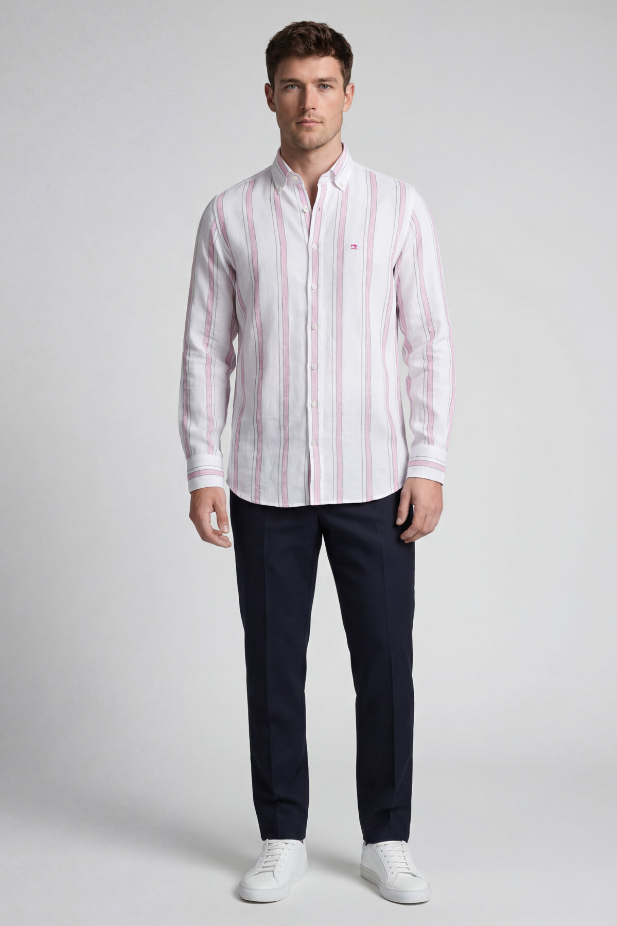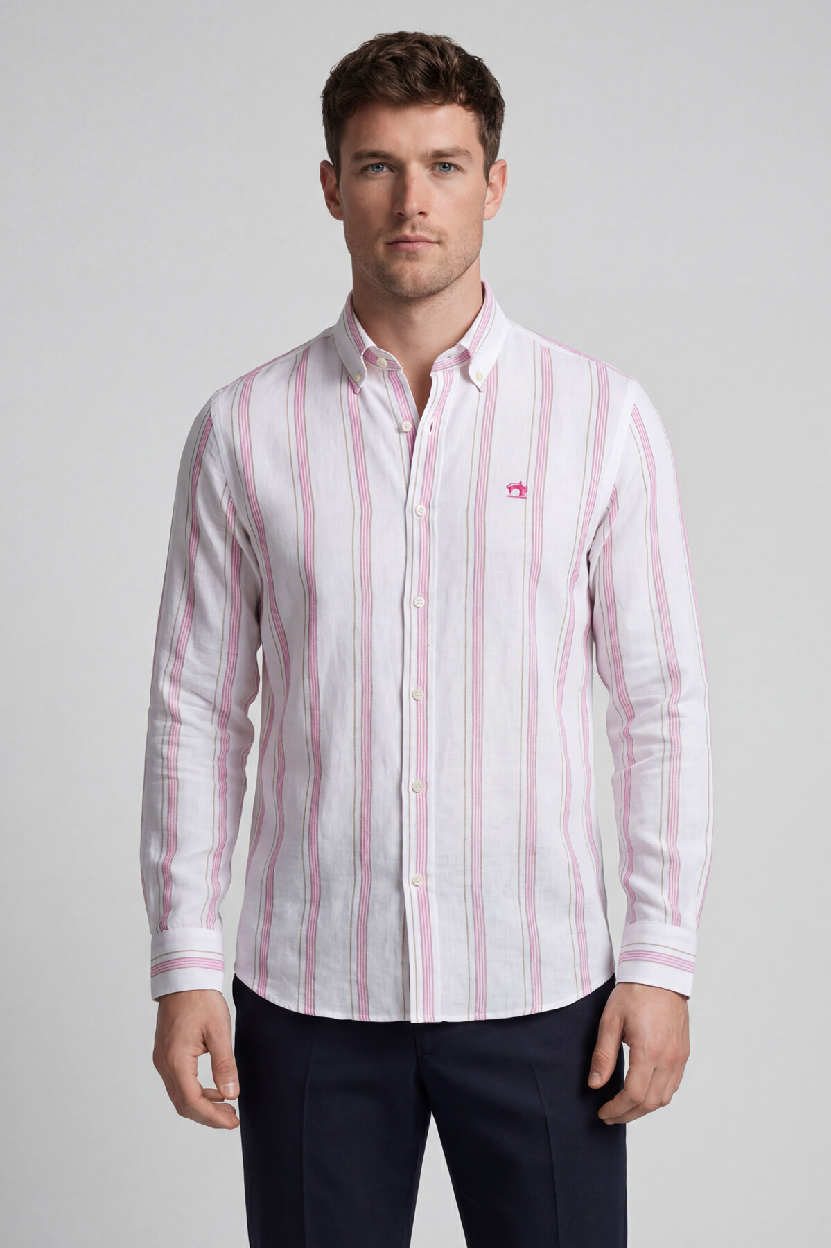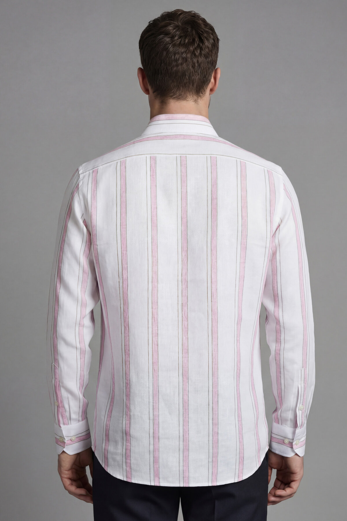 Regular Fit Uzun Kol Keten Paşa Yaka Pembe Erkek Gömlek
