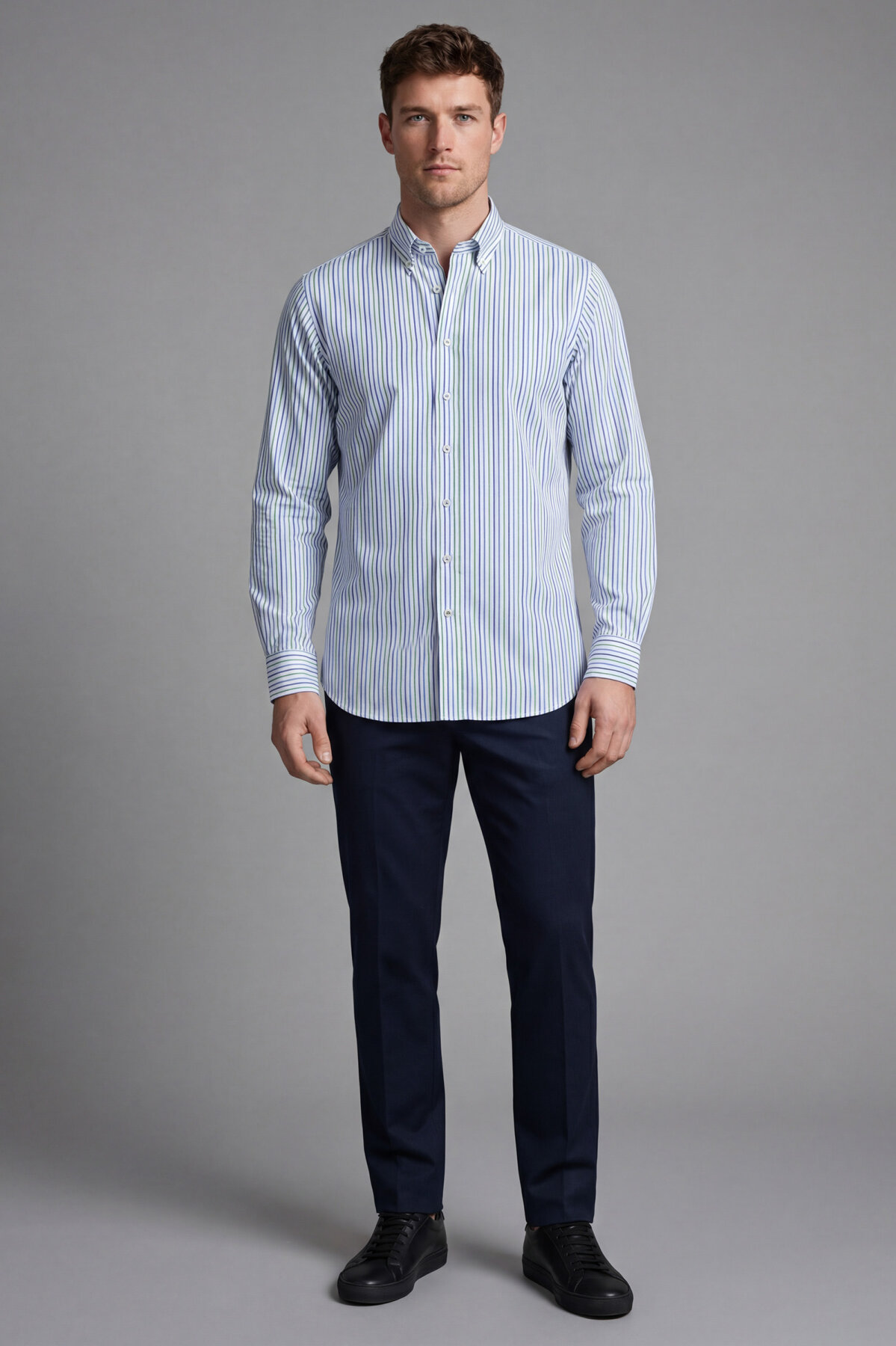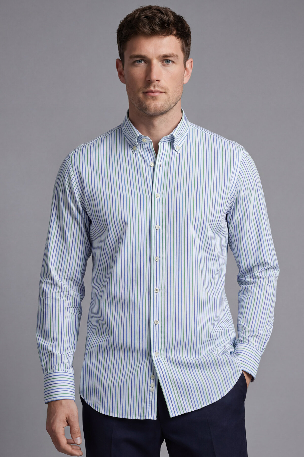 Regular Fit Uzun Kol Keten Paşa Yaka Turkuaz Erkek Gömlek