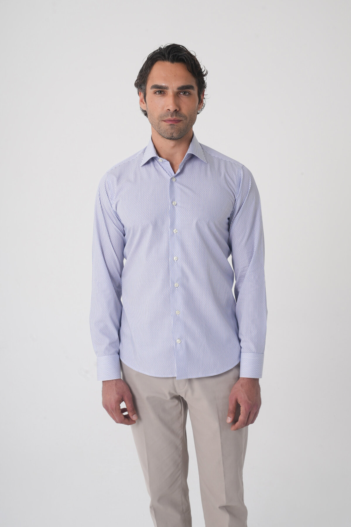 Regular Fit Uzun Kol Pamuk Mavi Erkek Gömlek
