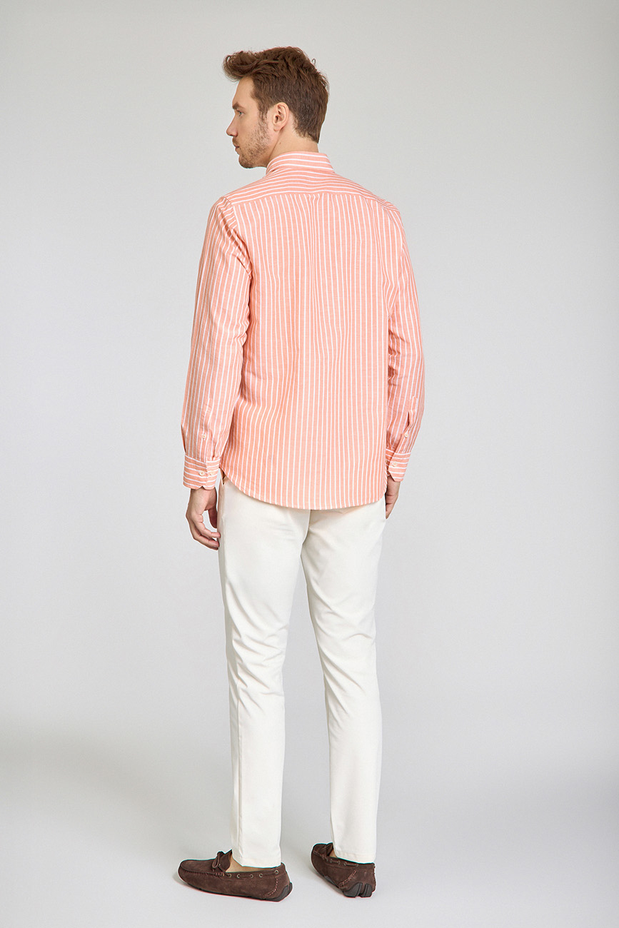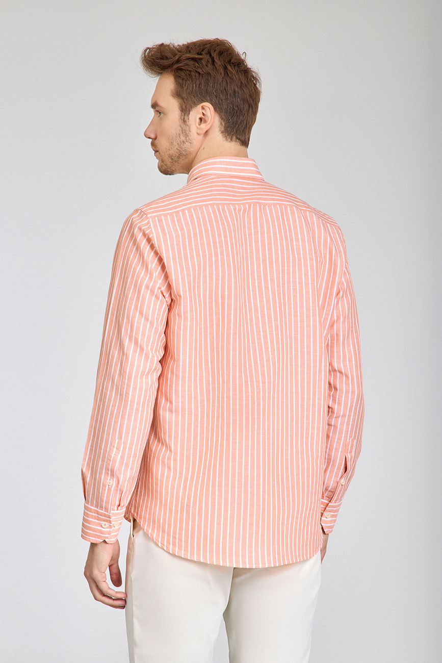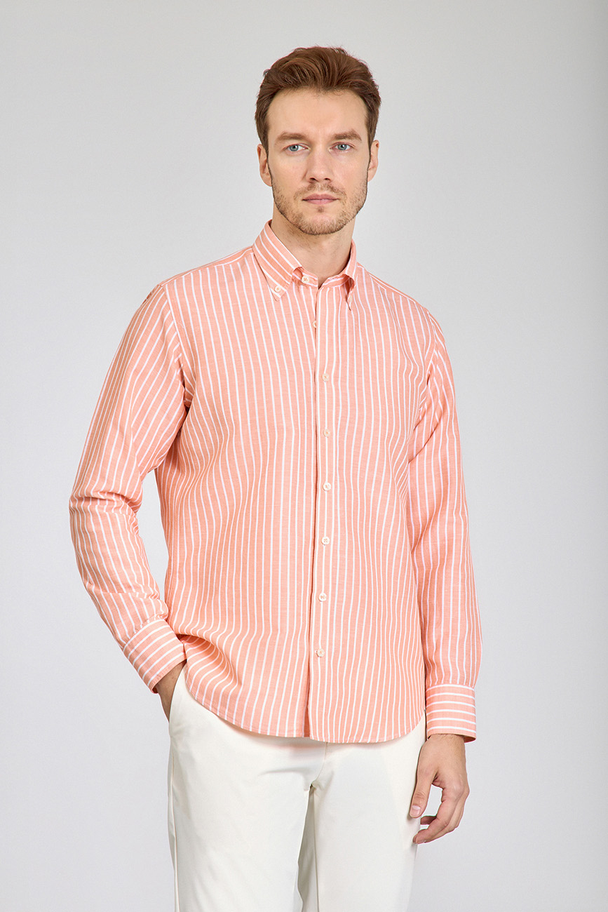 Regular Fit Uzun Kollu Turuncu Pamuk Keten Erkek Gömlek