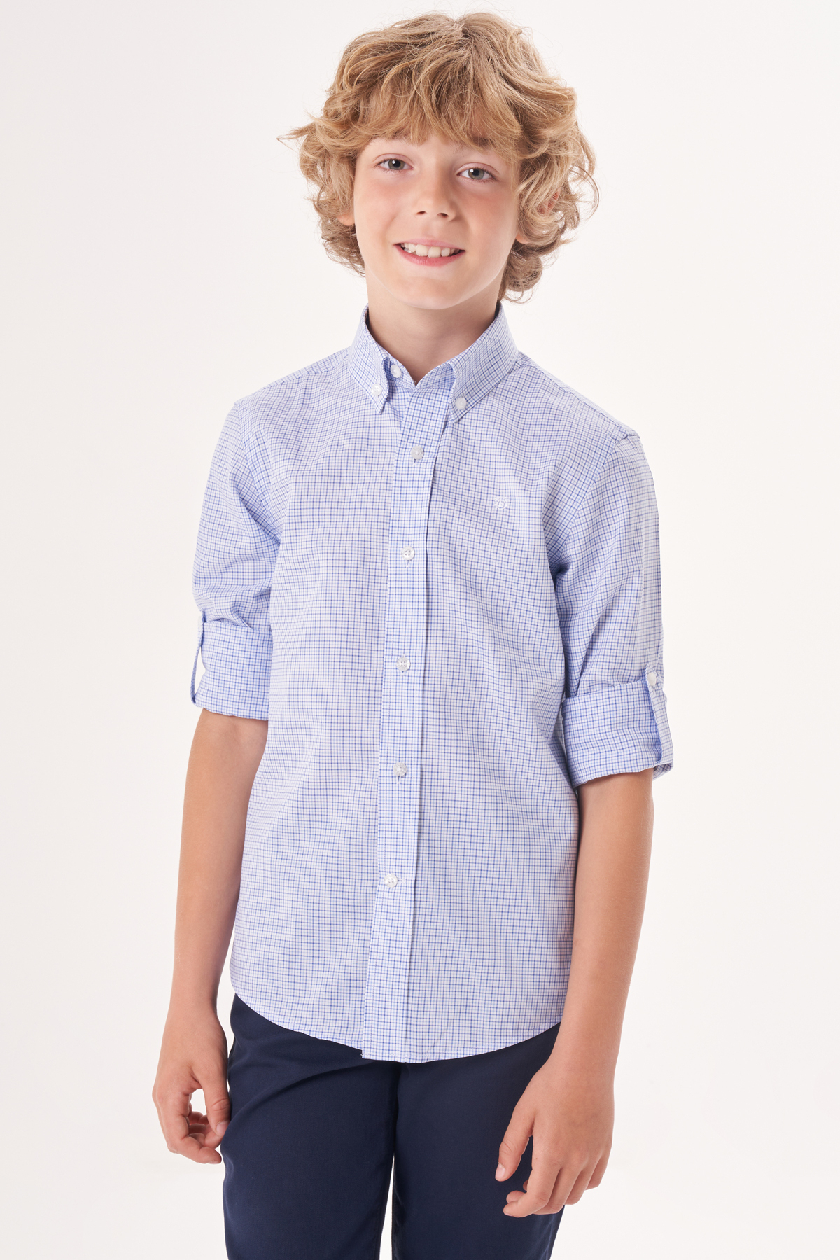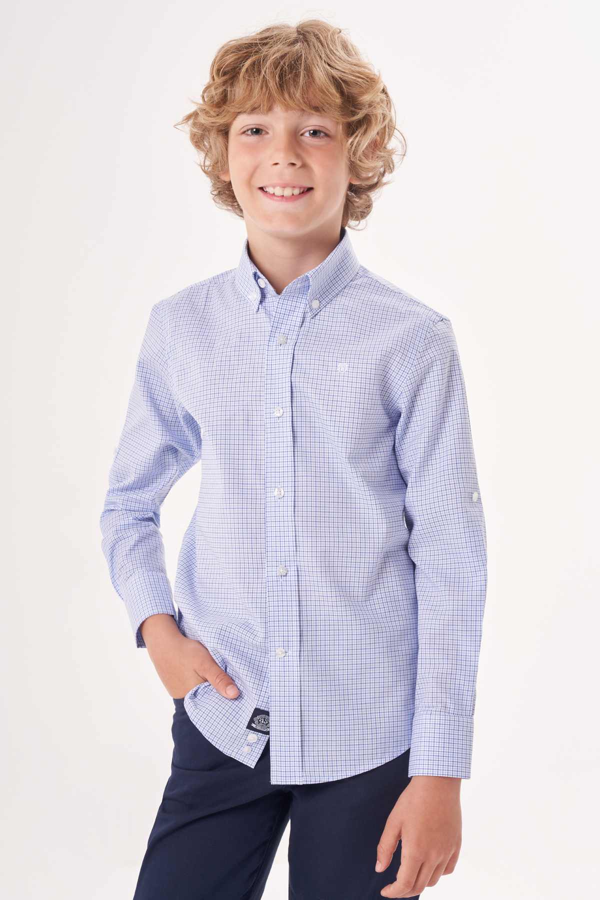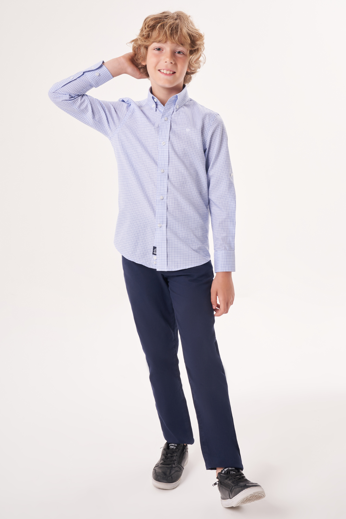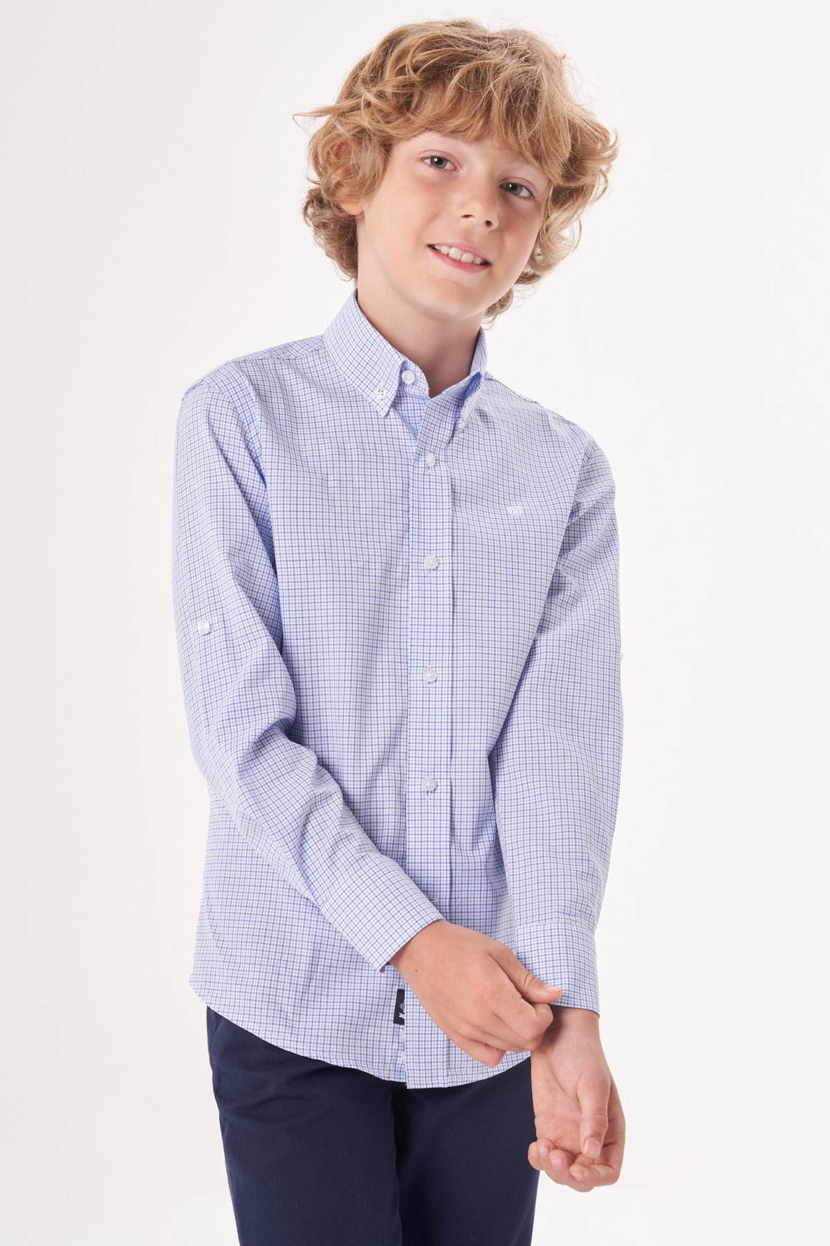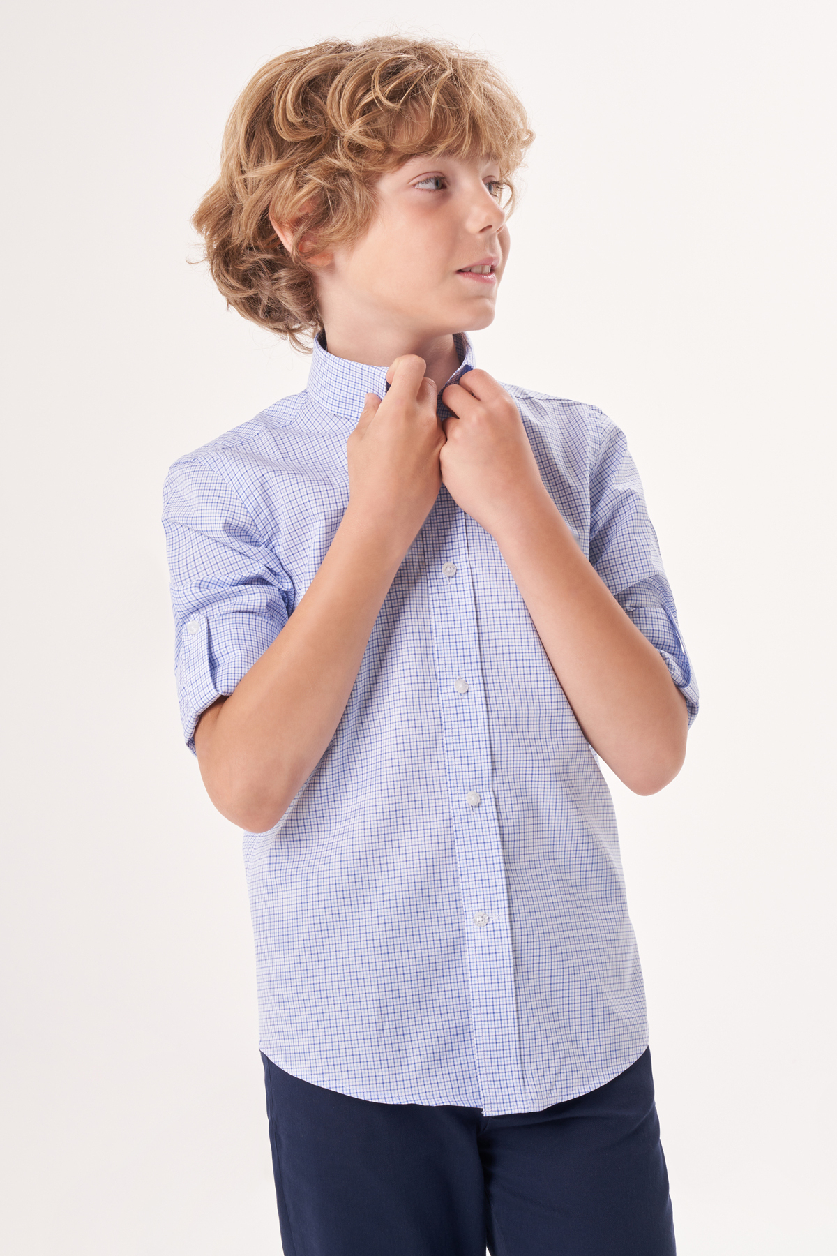 Regular Fit Yaka Düğmeli Lacivert Çocuk Erkek Gömlek