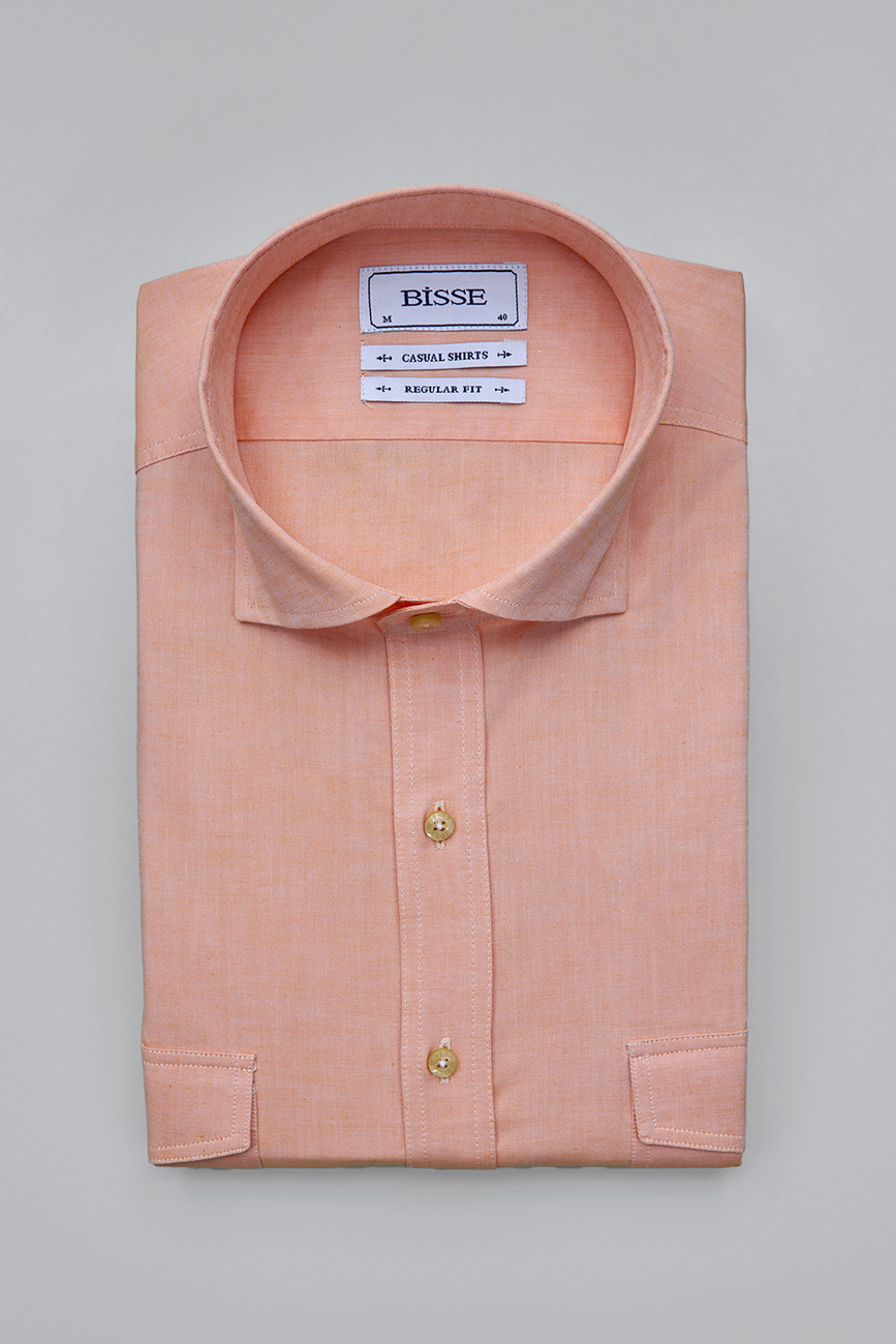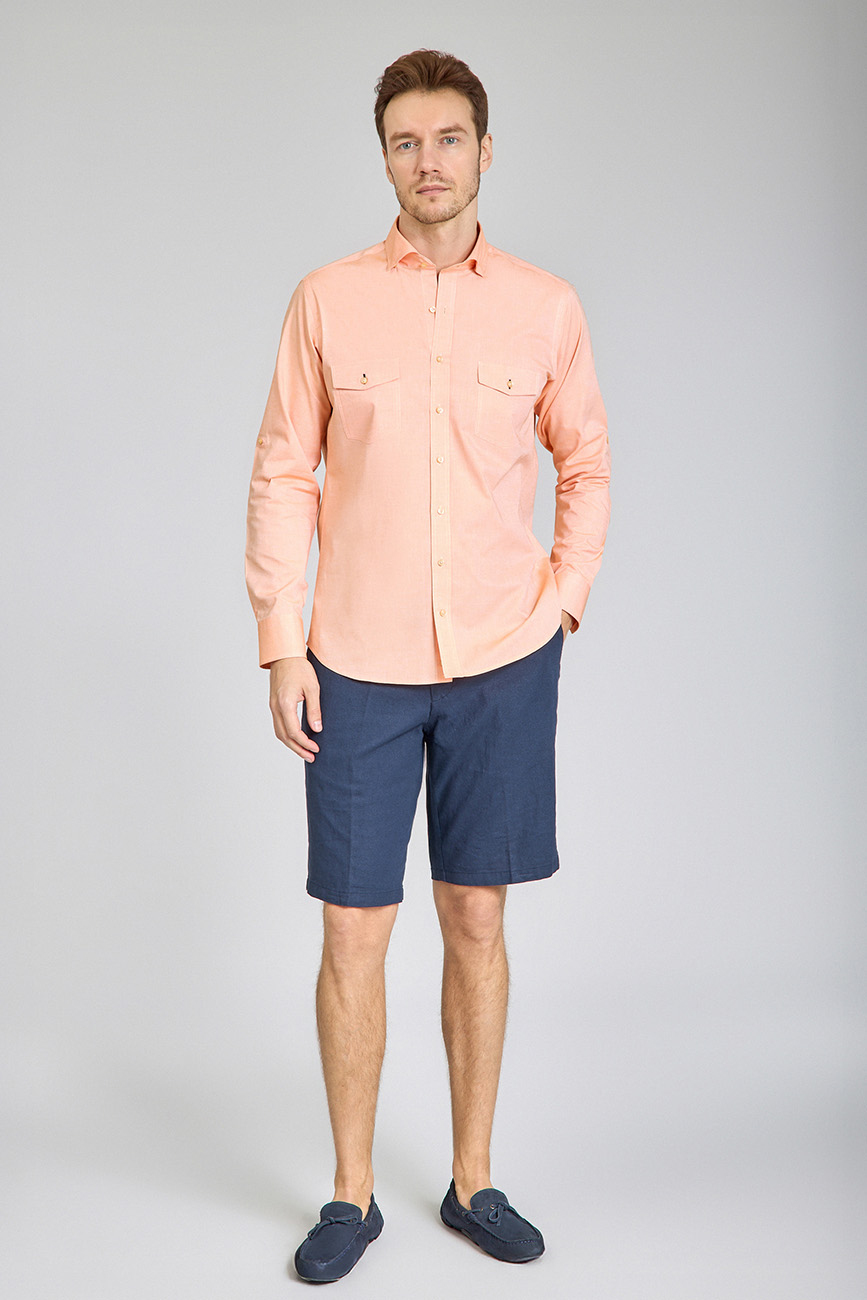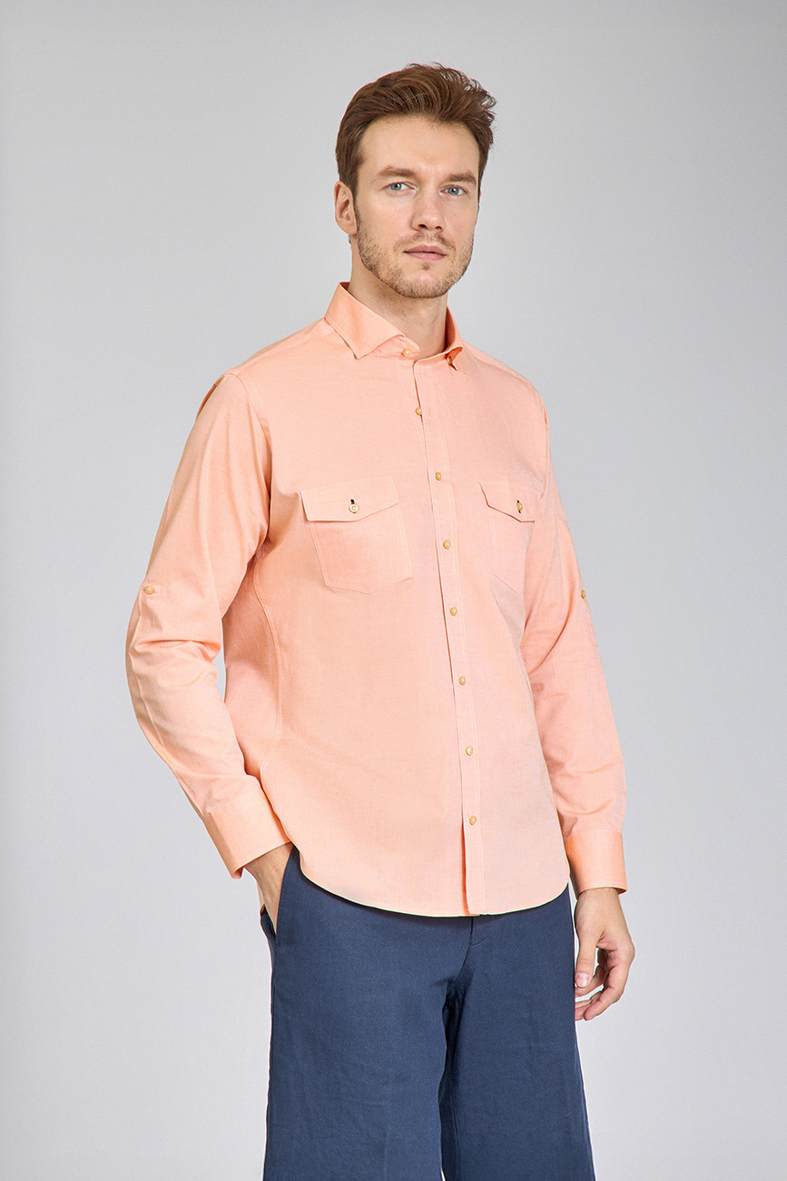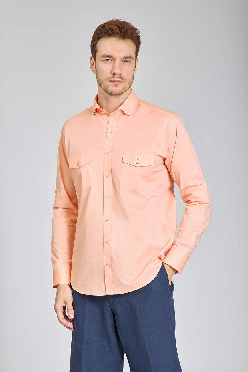 Regular Fit Yaka Düğmeli Oranj Pamuk Erkek Gömlek