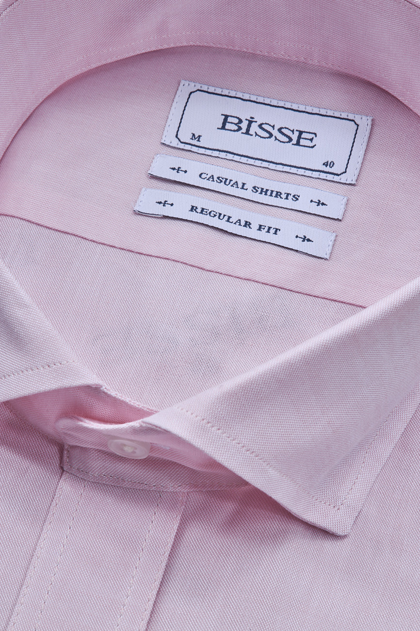 Regular Fit Yaka Düğmeli Pembe Pamuk Erkek Gömlek