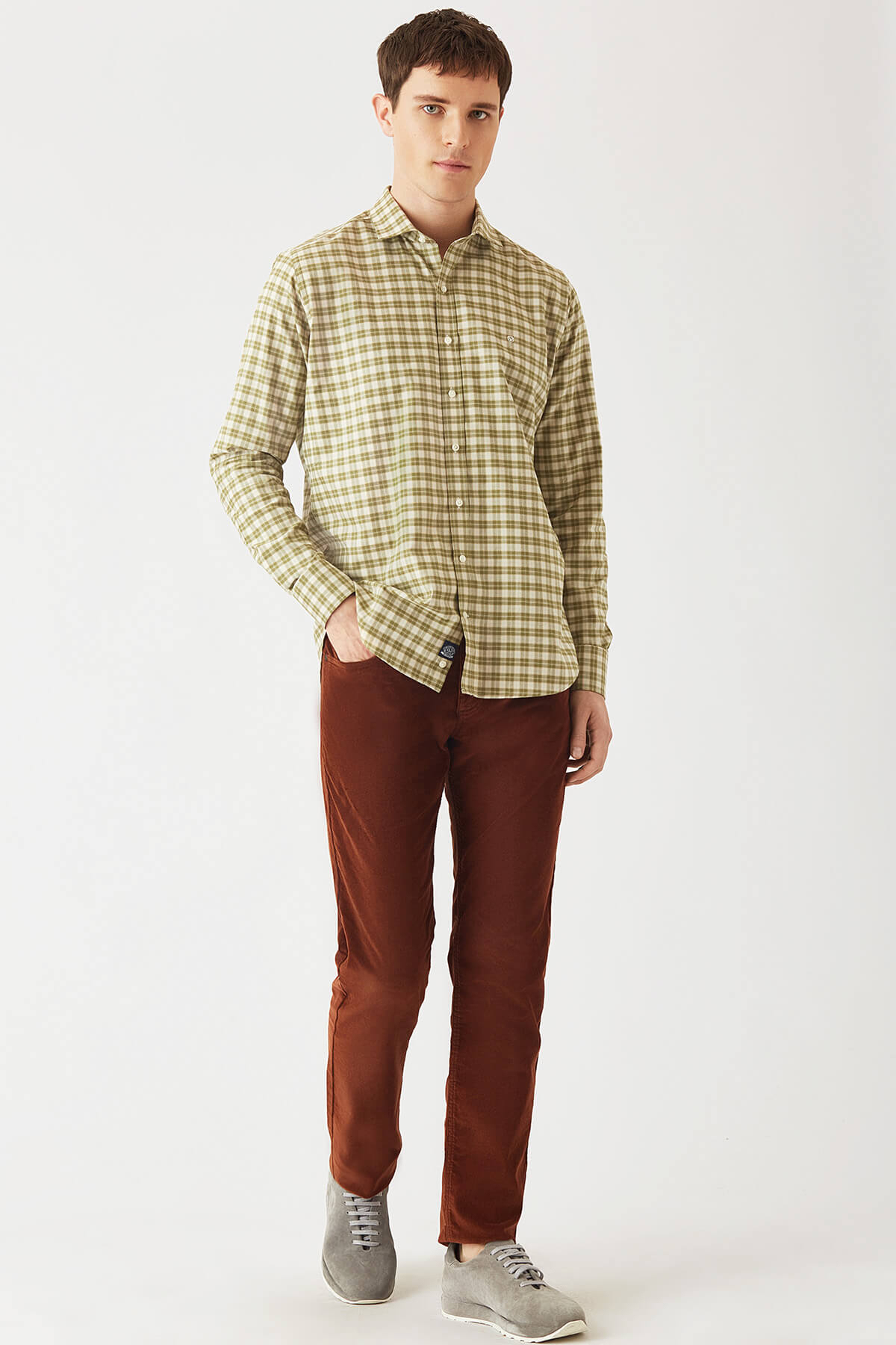 Regular Fit Yeşil Ram Yaka Spor Erkek Gömlek