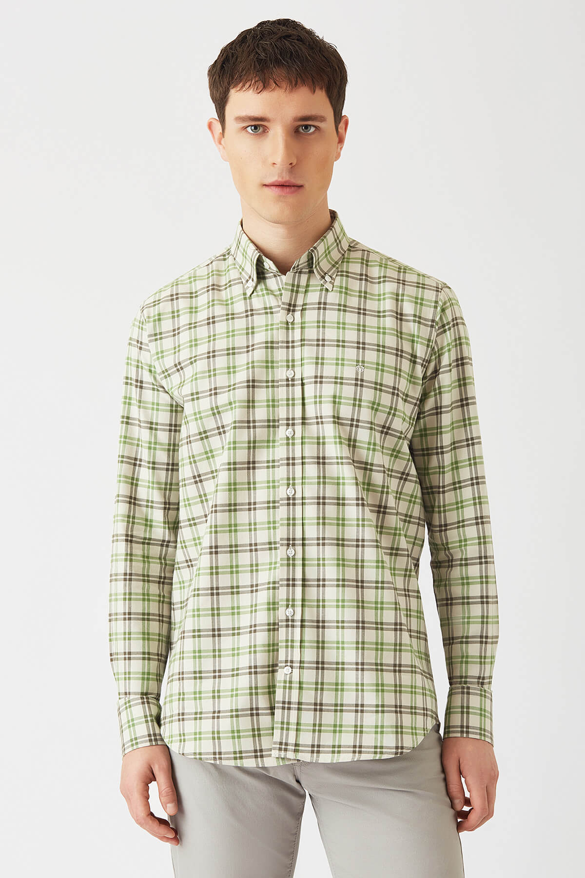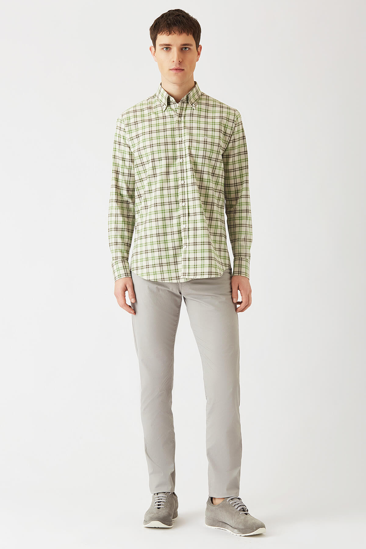 Regular Fit Yeşil Uzun Kollu Spor Erkek Gömlek