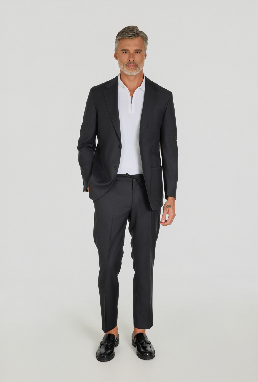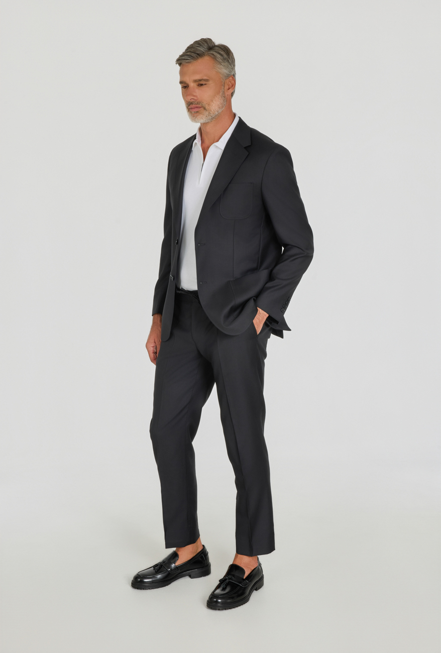 Siyah Comfort Fit İtalyan Yaka Sedef Düğmeli 6 Drop Yün Takım Elbise