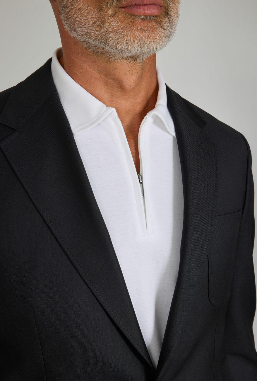 Comfort Fit Siyah Mono Yaka Çift Yırtmaçlı 6 Drop Erkek İpek Yün Ceket