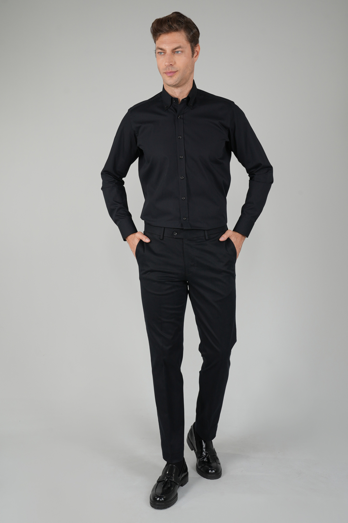 MODEL ÖLÇÜLERİ: Boy: 189 cm Göğüs: 102 cm Bel: 86 cm Kalça: 102 cmModel 48 Beden Giymektedir.