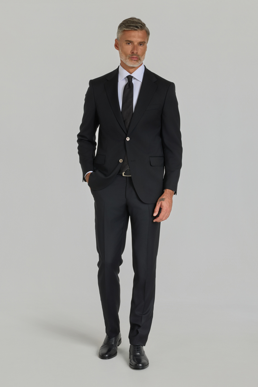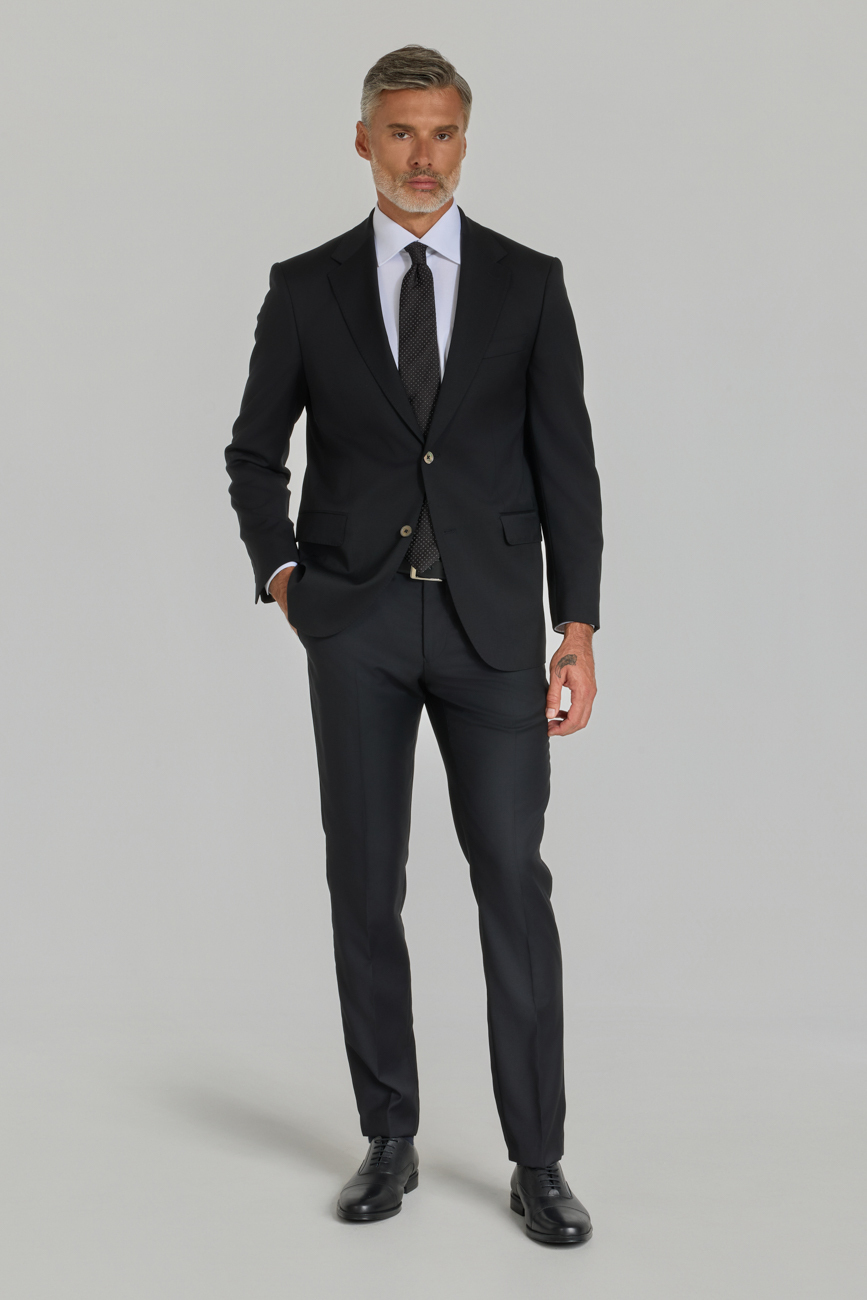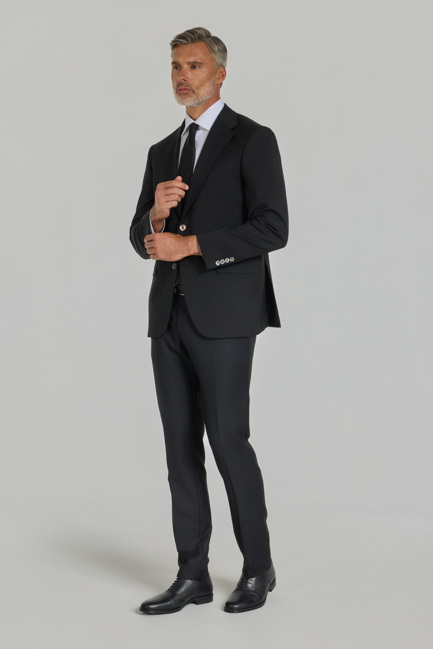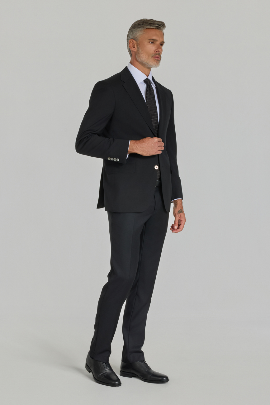 Siyah Dokuma Mono Yaka Çift Yırtmaçlı 6 Drop Yün Klasik Takım Elbise