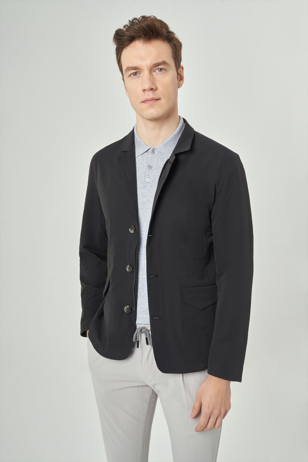 Siyah Erkek Düğmeli Ceket Mont