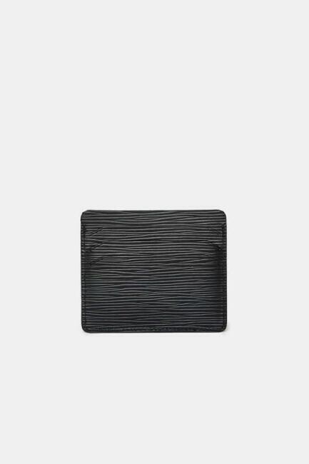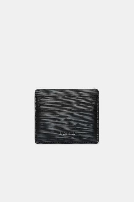 Siyah Gerçek Deri Lazer Desenli Erkek Kartvizit
