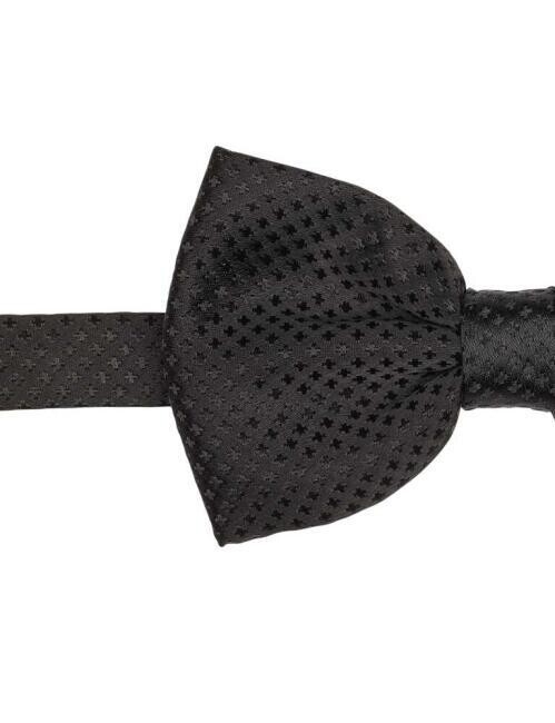Siyah Kendinden Desenli Erkek Smokin Papyon