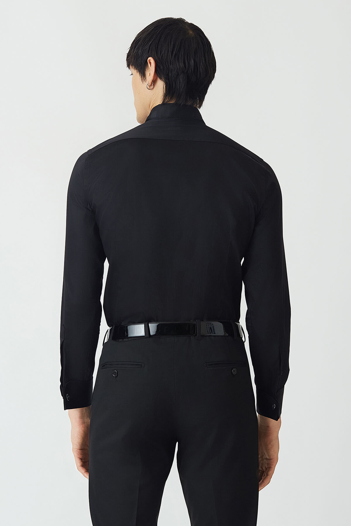 Siyah Pamuk Ata Yaka Slim Fit Erkek Gömlek Siyah