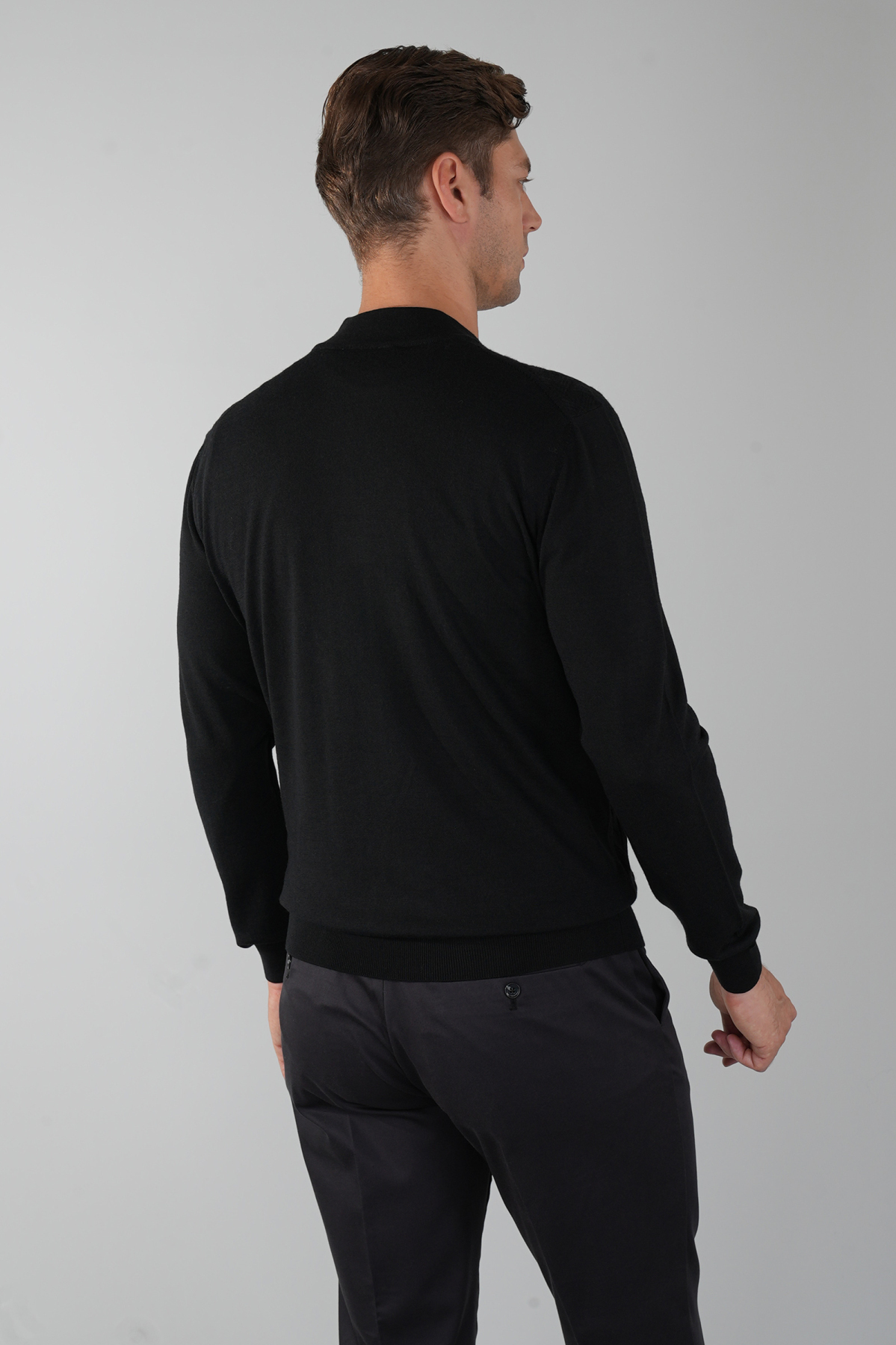 Siyah Yarım Balıkçı Yaka Fermuar Detaylı Jakarlı Erkek Triko