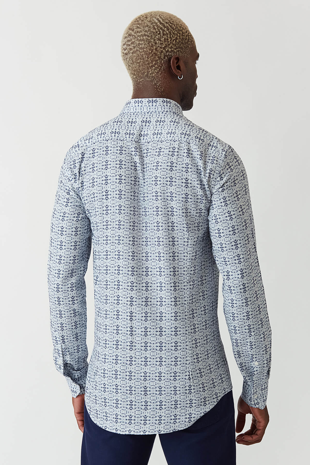 Slim Fit Lacivert Desenli Uzun Kollu Spor Erkek Gömlek