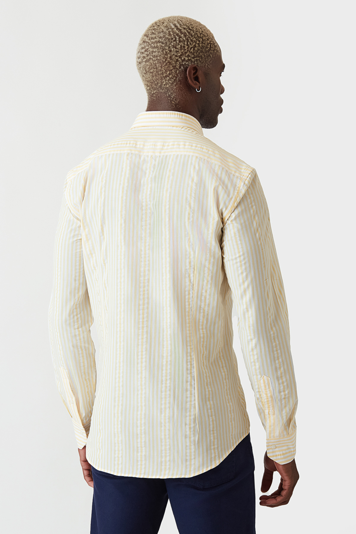 Slim Fit Sarı Paşa Yaka Spor Erkek Gömlek