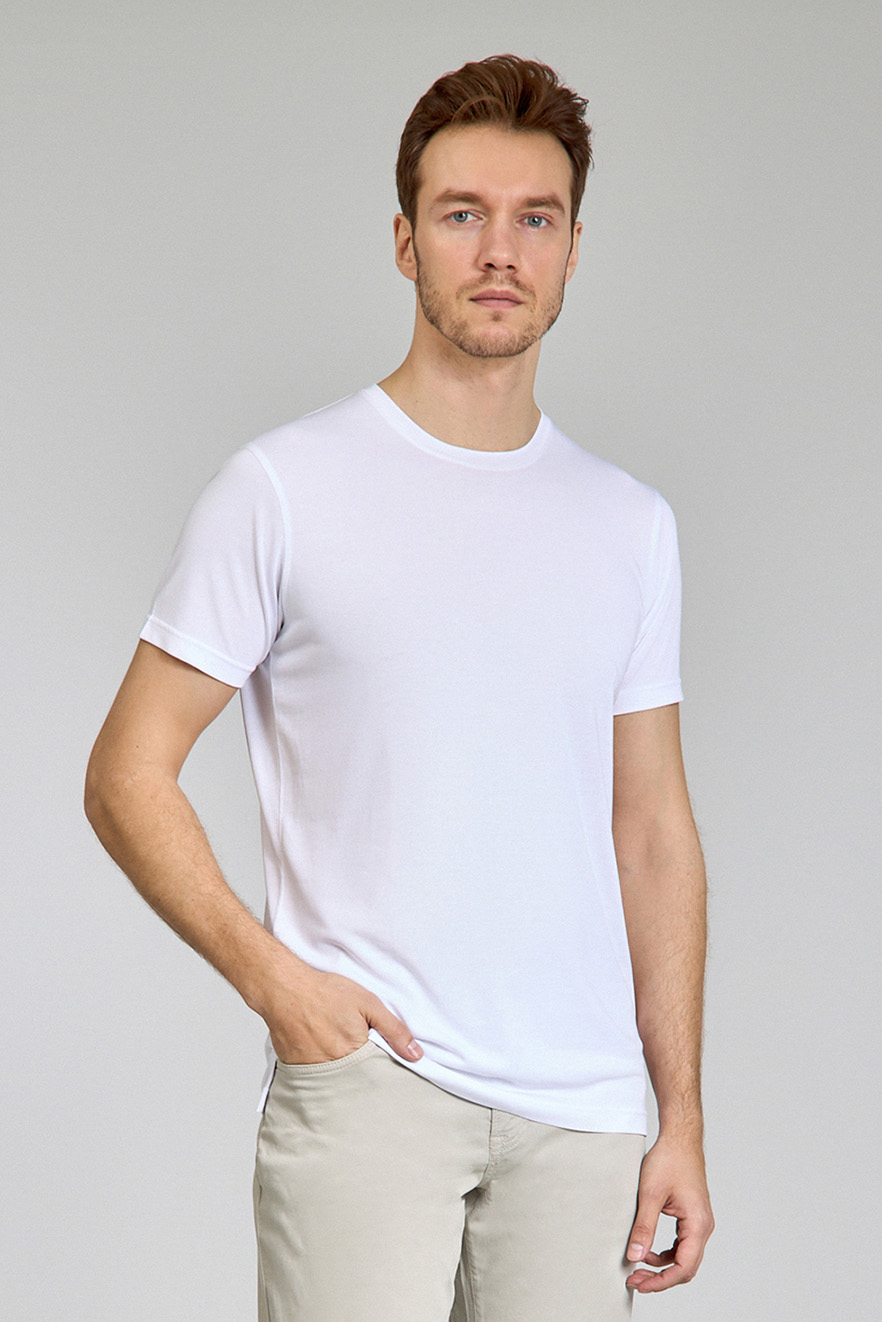 Regular Fit, Bisiklet YakaMODEL ÖLÇÜLERİ: Boy: 189 cm Göğüs: 100 cm Bel: 86 cm Kalça: 102 cm