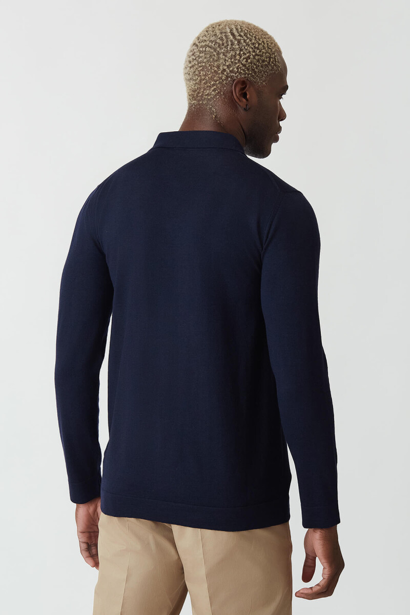 Lacivert Düğmeli Polo Yaka Erkek Yün Triko