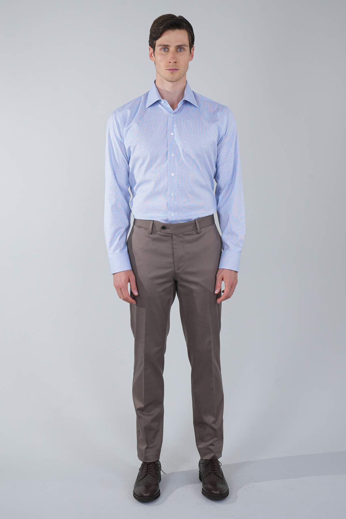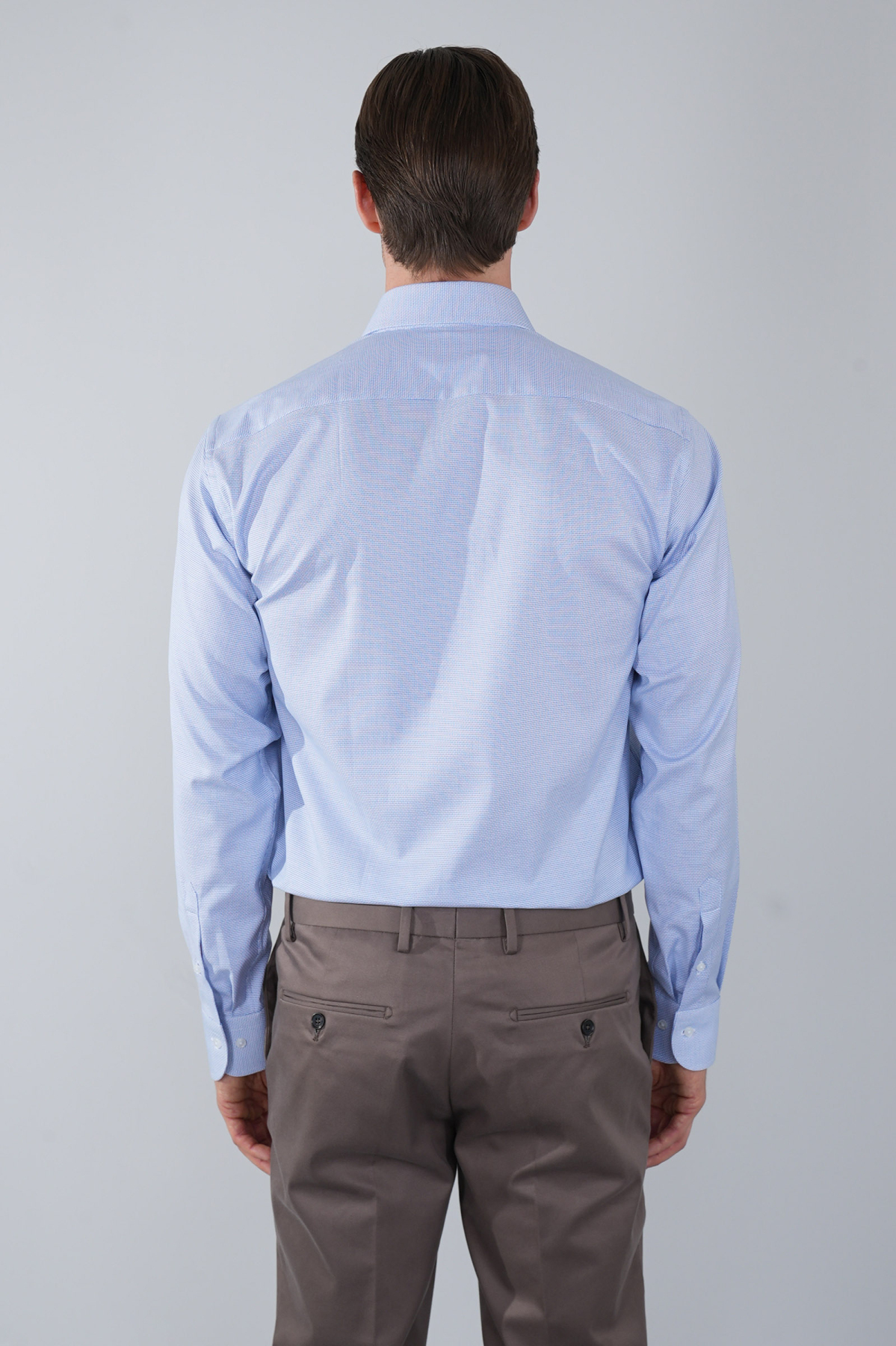 Mavi Uzun Kol İtalyan Yaka Cepsiz Erkek Gömlek