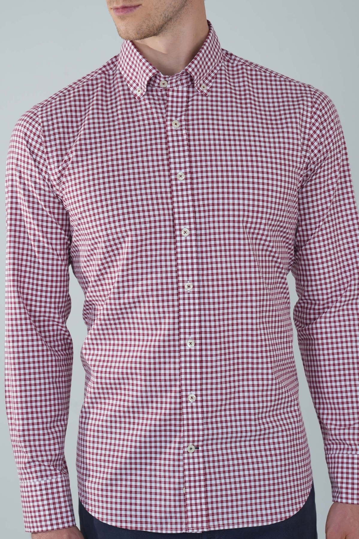 Uzun Kol Paşa Yaka Cepsiz Bordo Pamuk Erkek Gömlek
