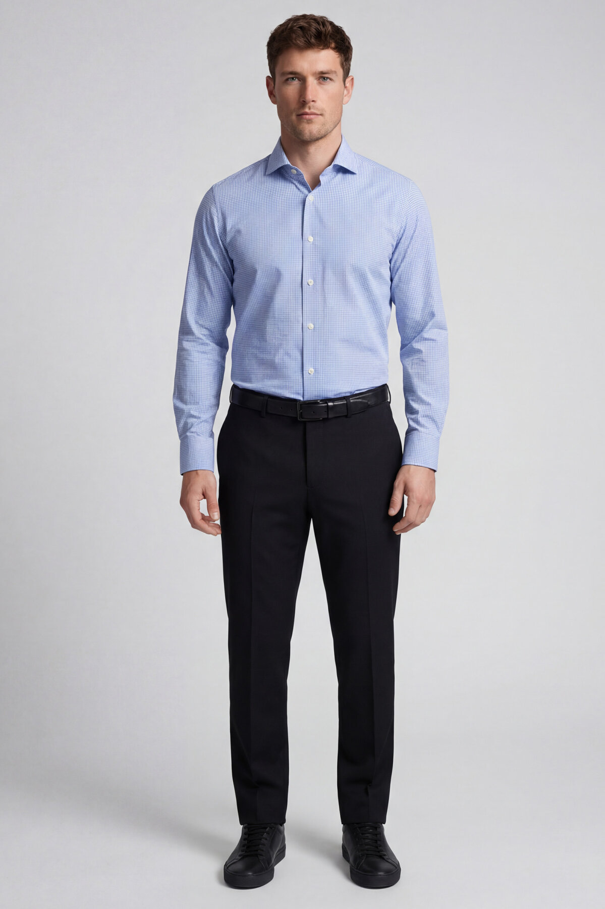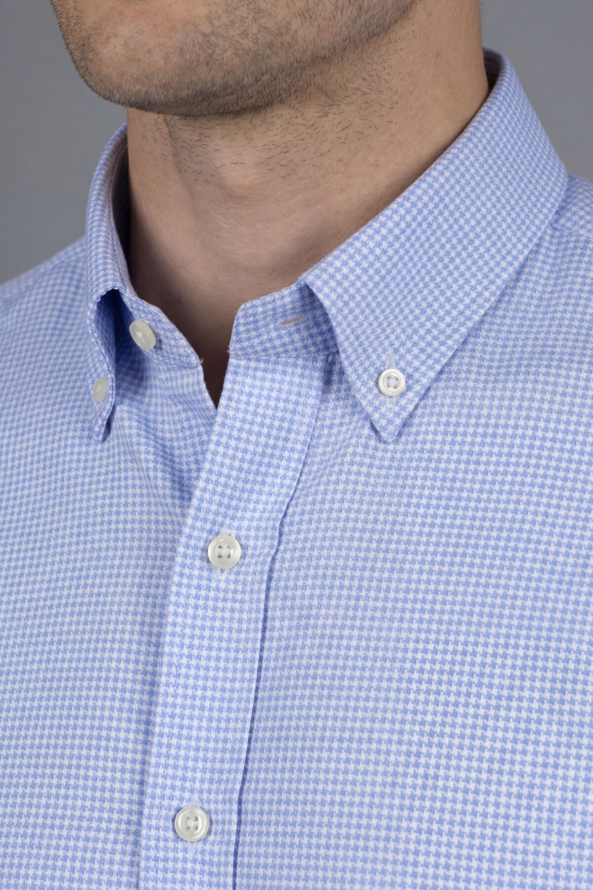 Regular Fit Uzun Kol Paşa Yaka Cepsiz Pamuk Mavi Erkek Gömlek Mavi