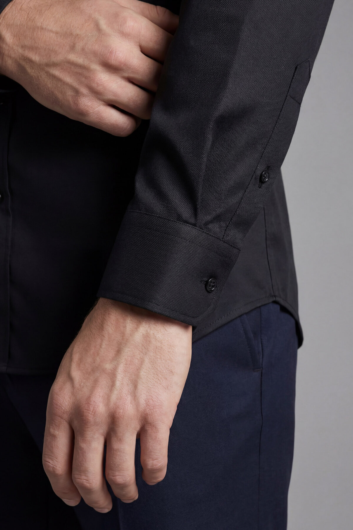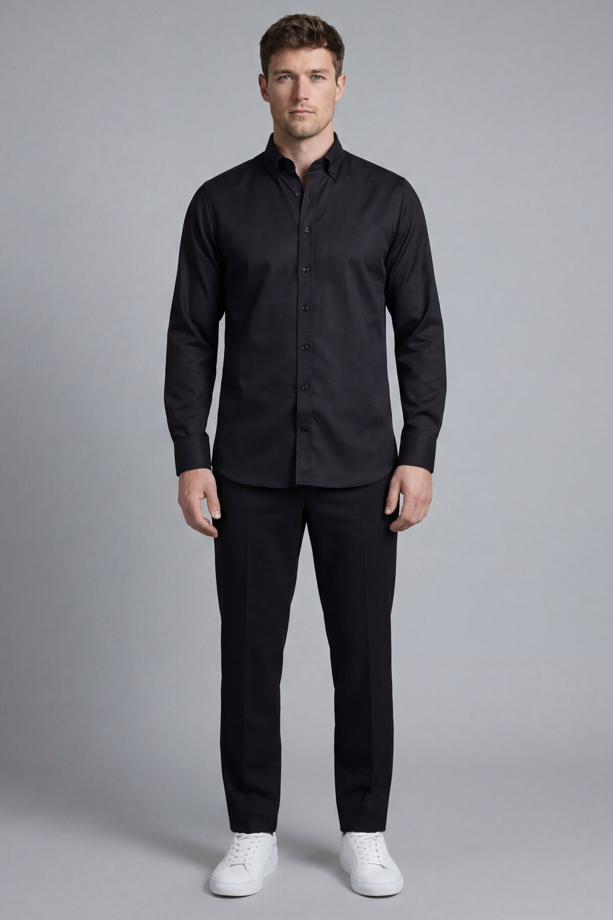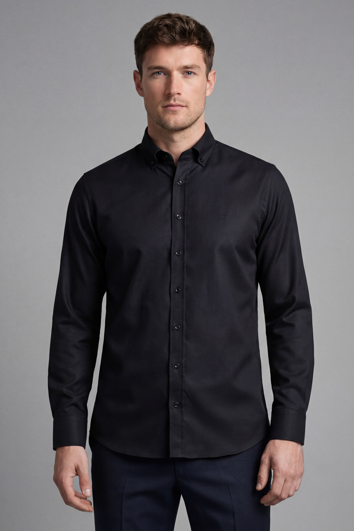 Bisse Studio Erkek Regular Fit Uzun Kollu Siyah Cepsiz Gömlek