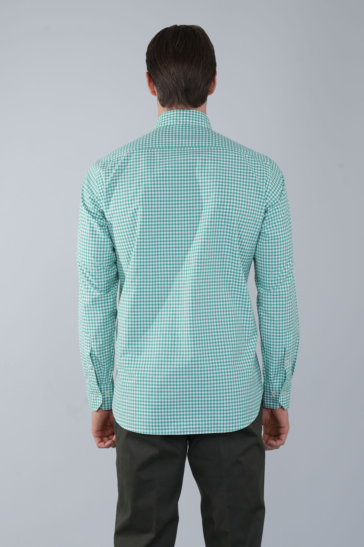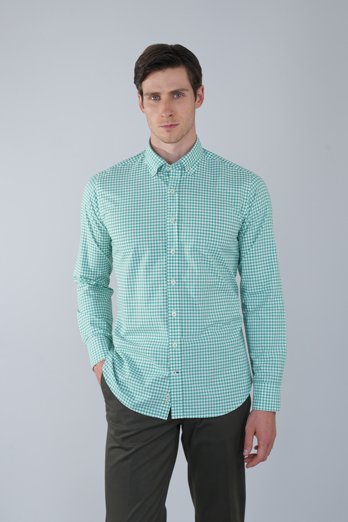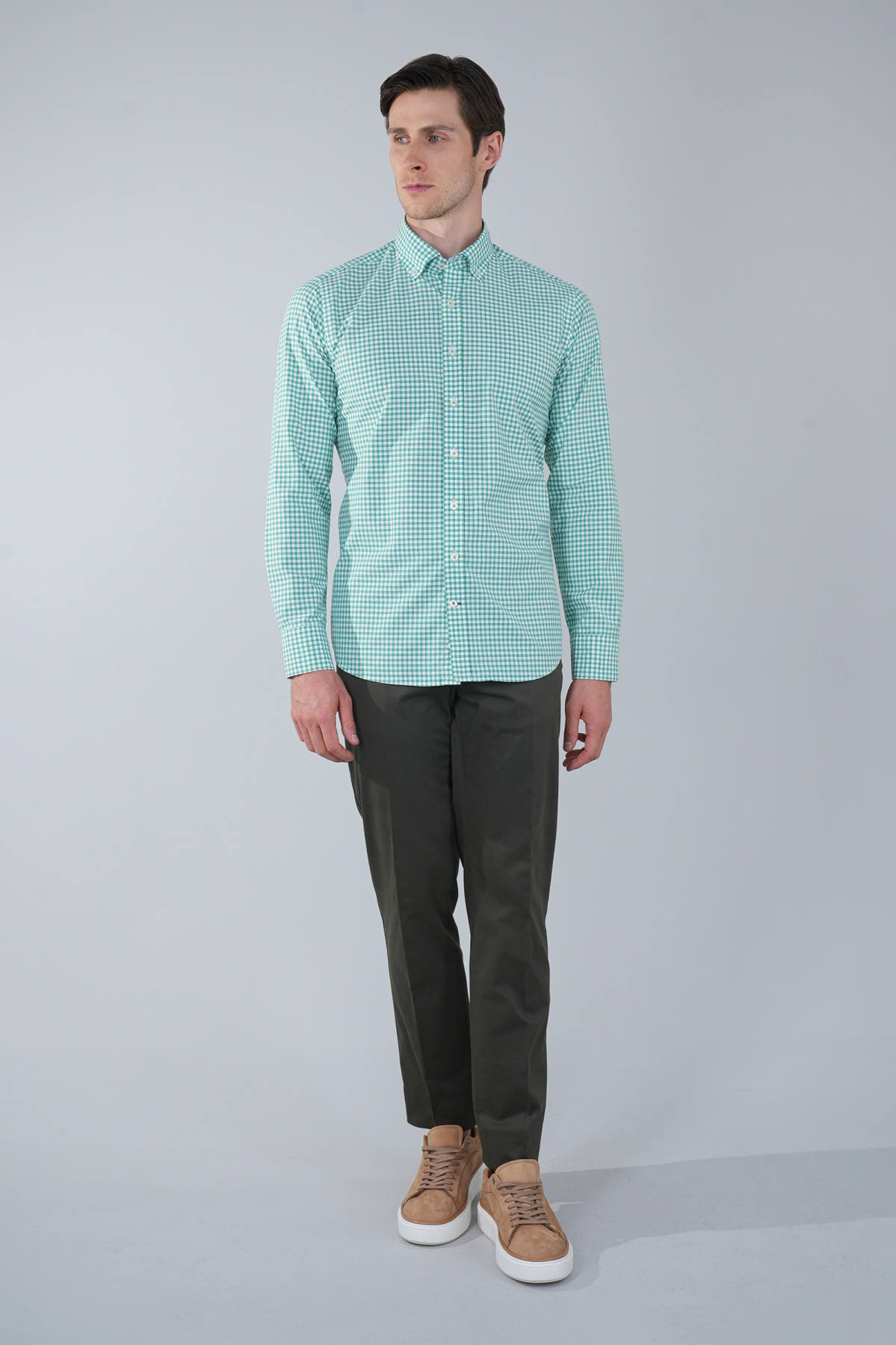 Uzun Kol Paşa Yaka Cepsiz Yeşil Pamuk Erkek Gömlek