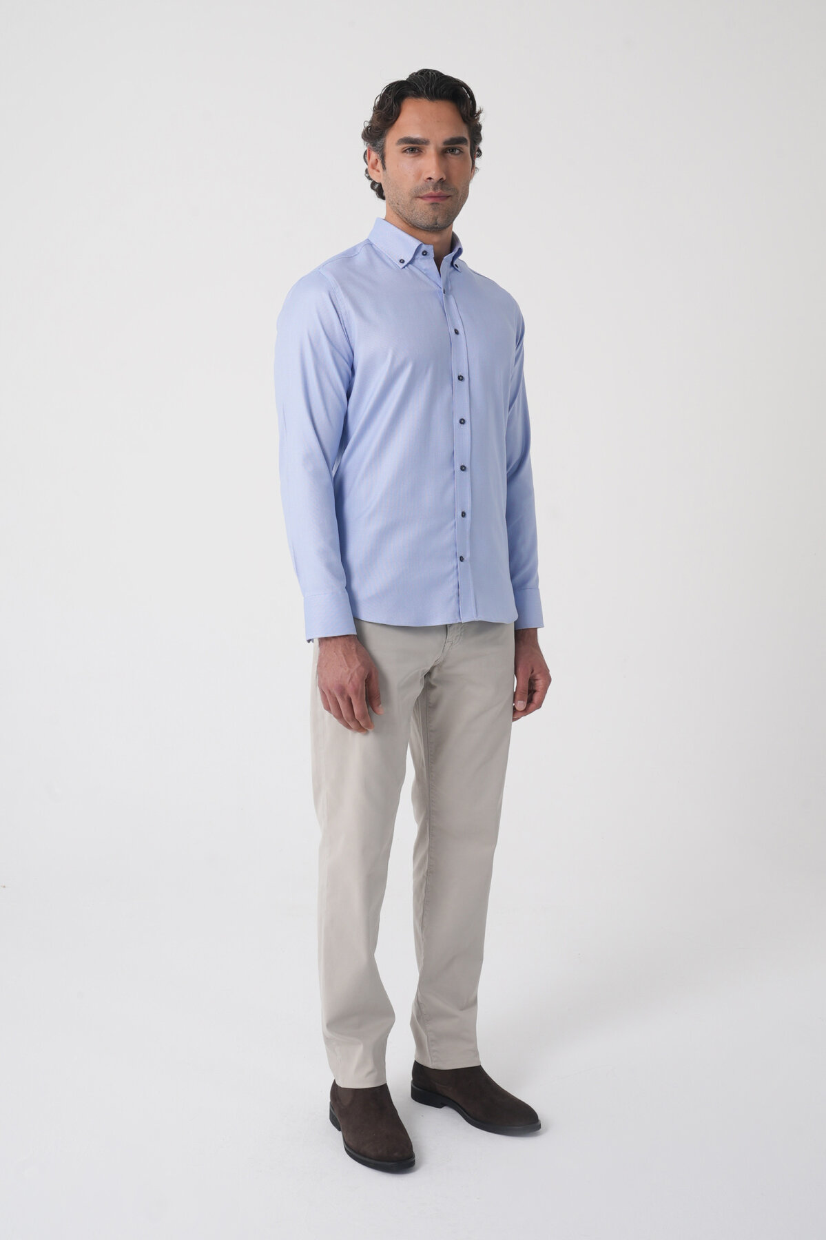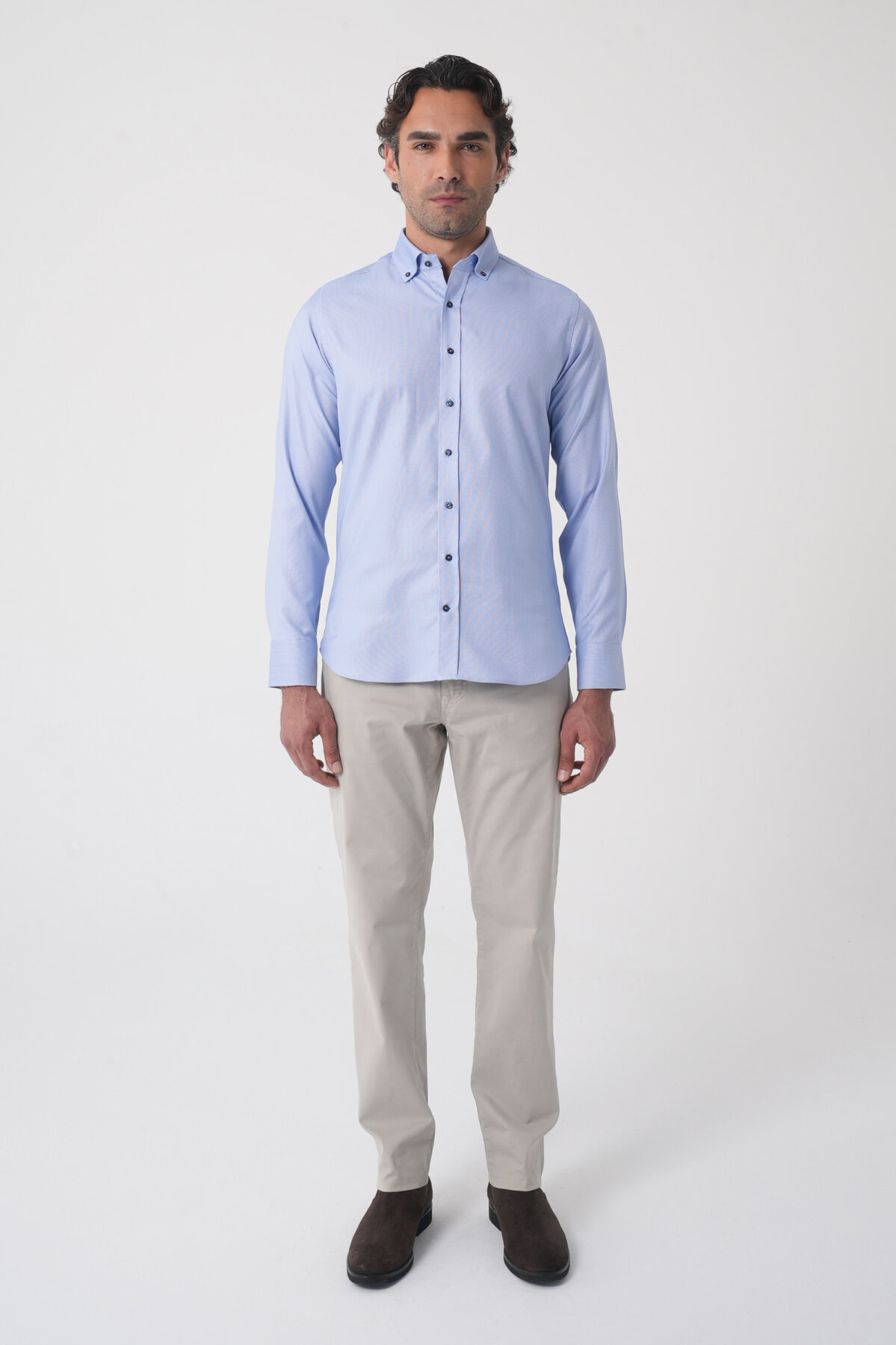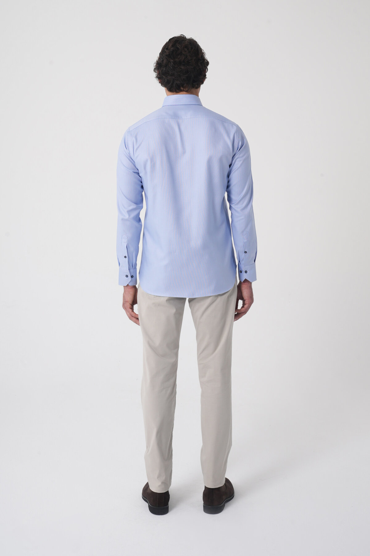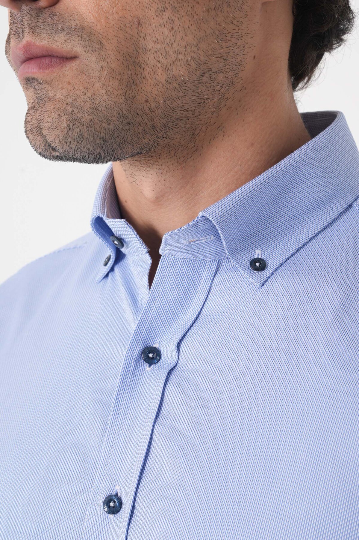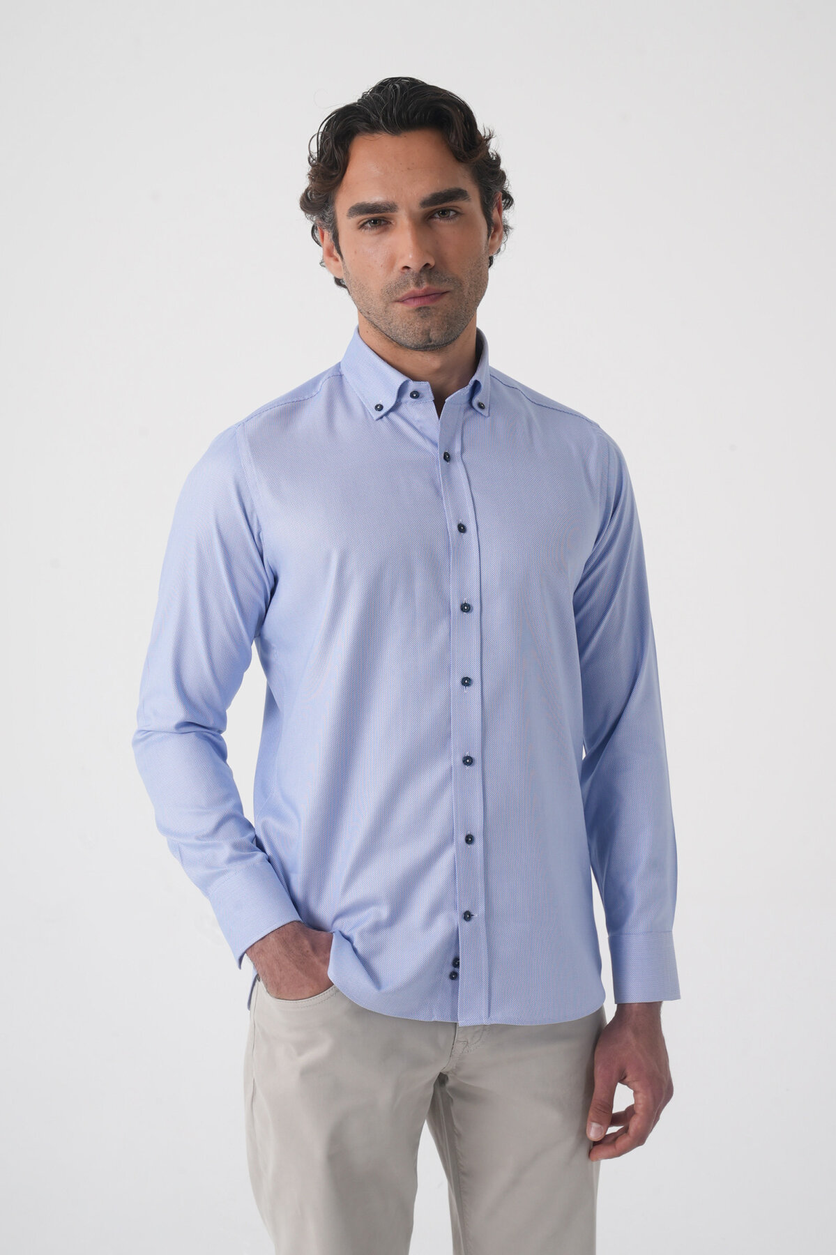 Uzun Kol Paşa Yaka Mavi Cepsiz Erkek Gömlek