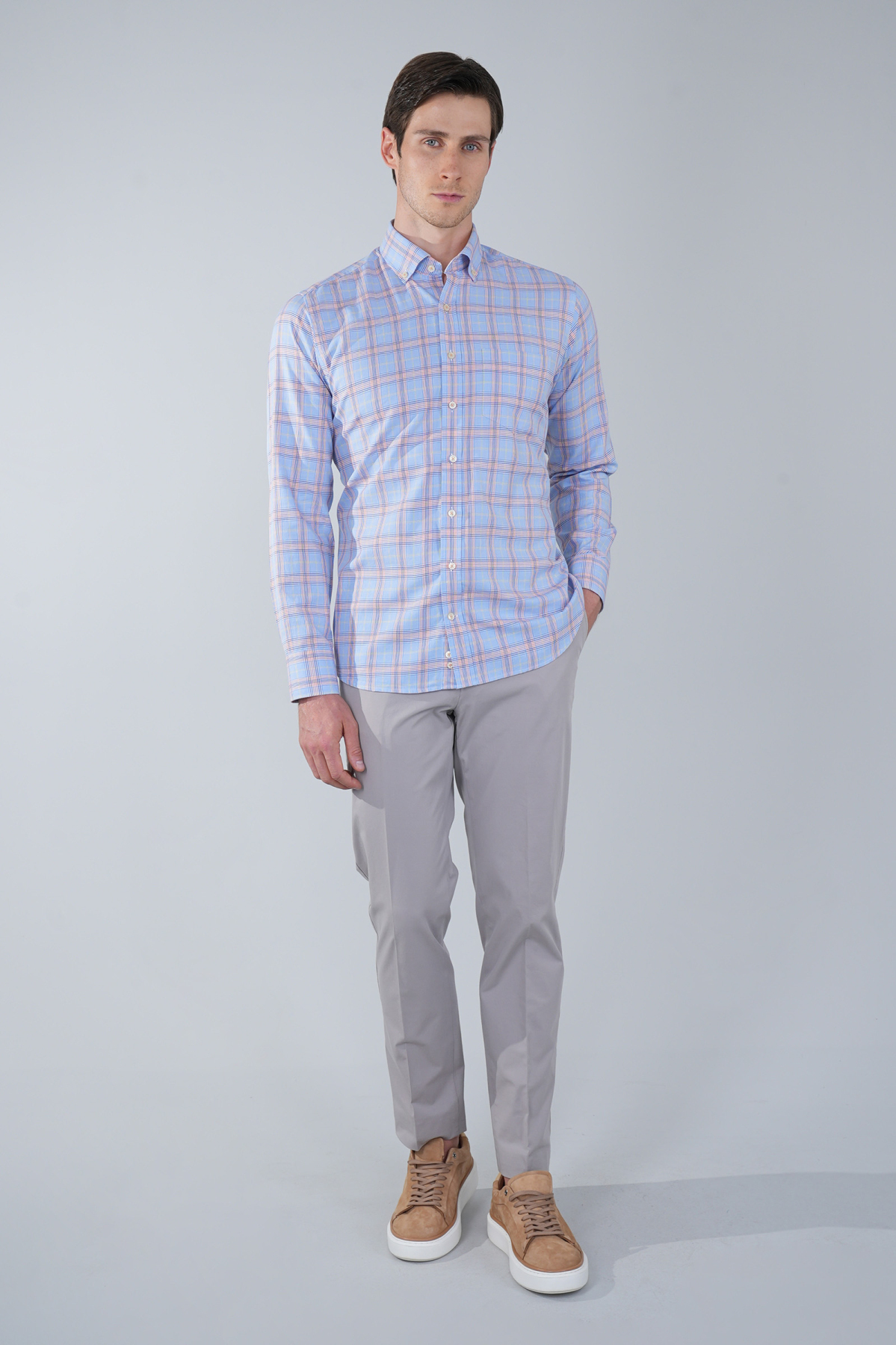 Uzun Kol Paşa Yaka Tek Cep Turuncu Pamuk Erkek Gömlek