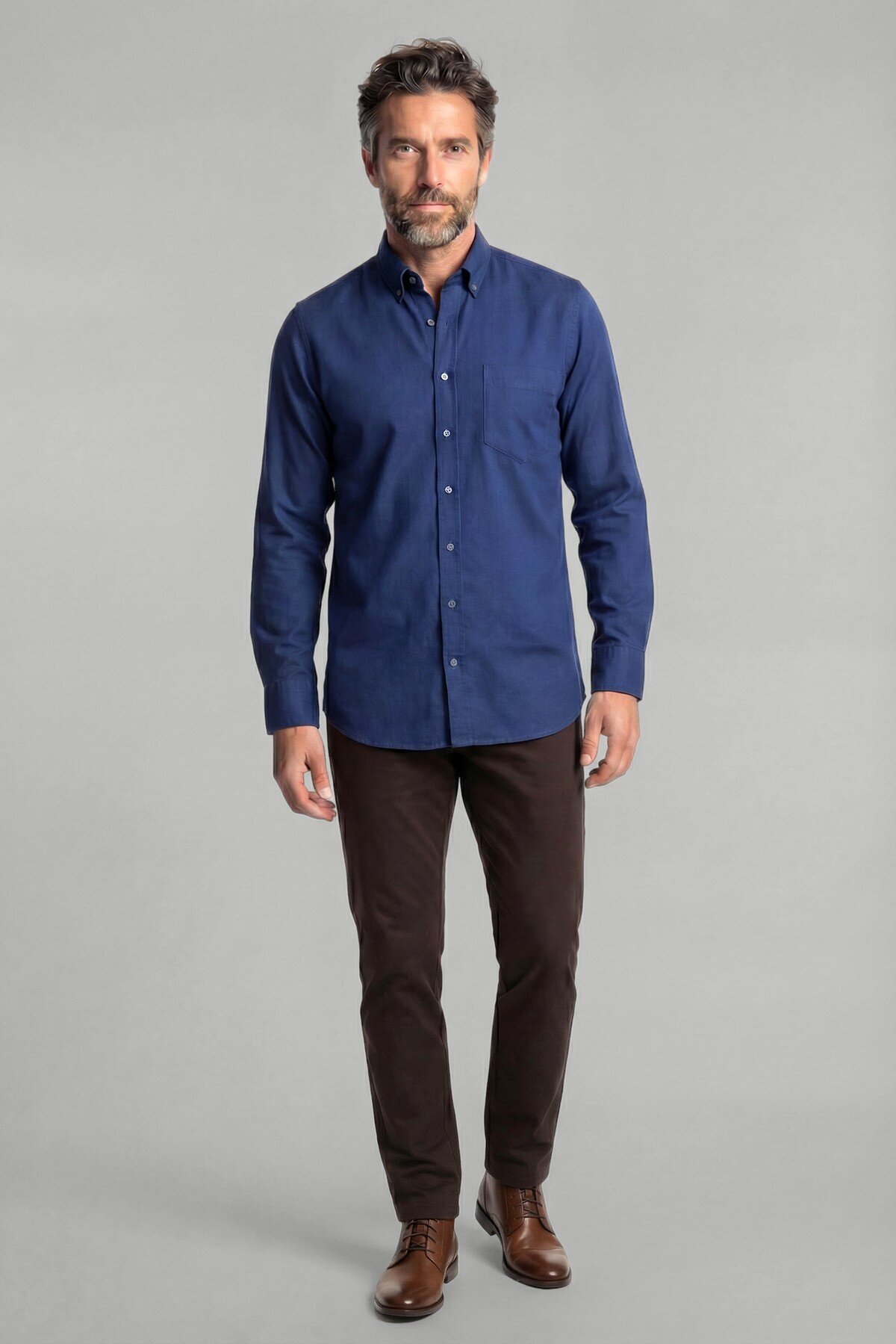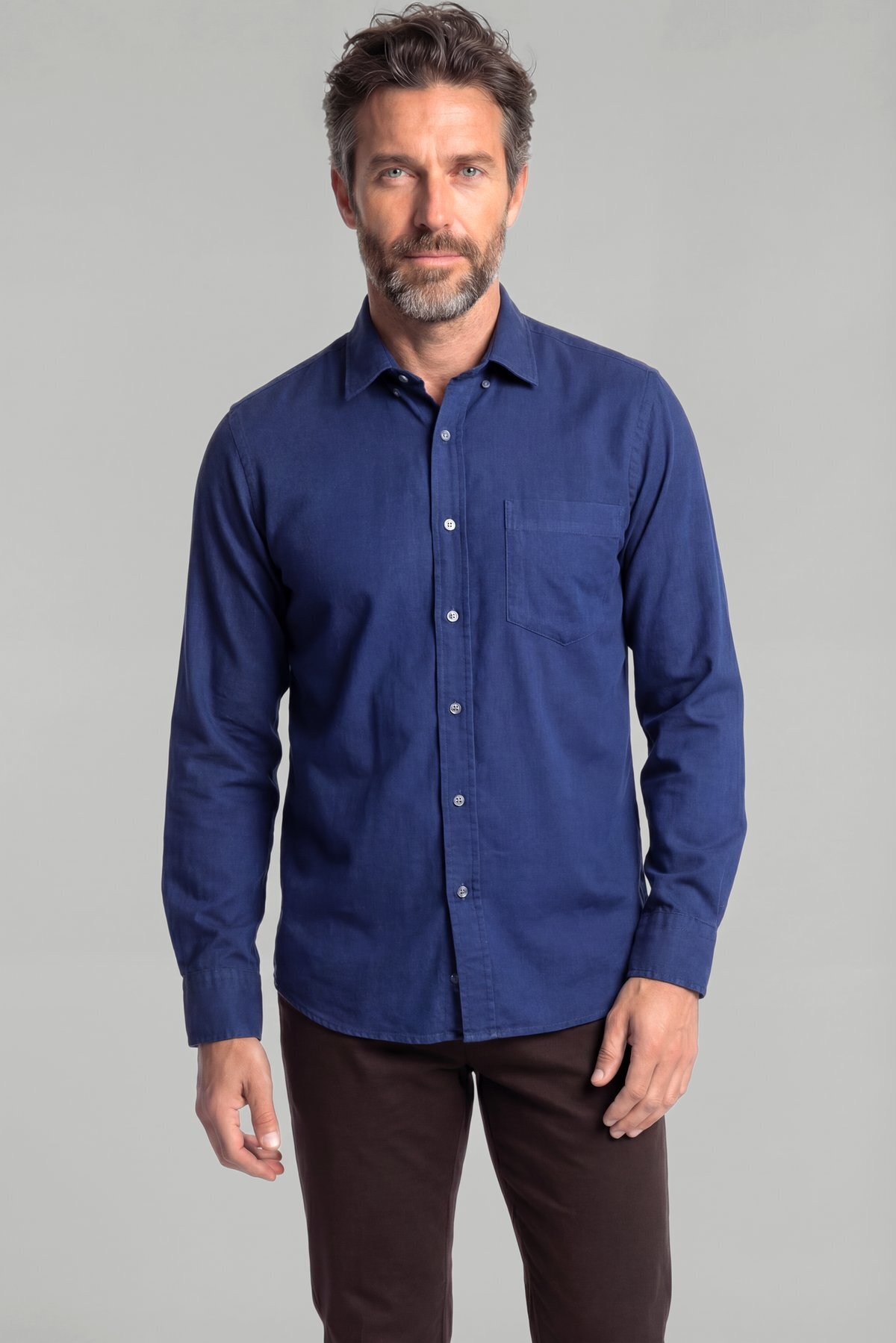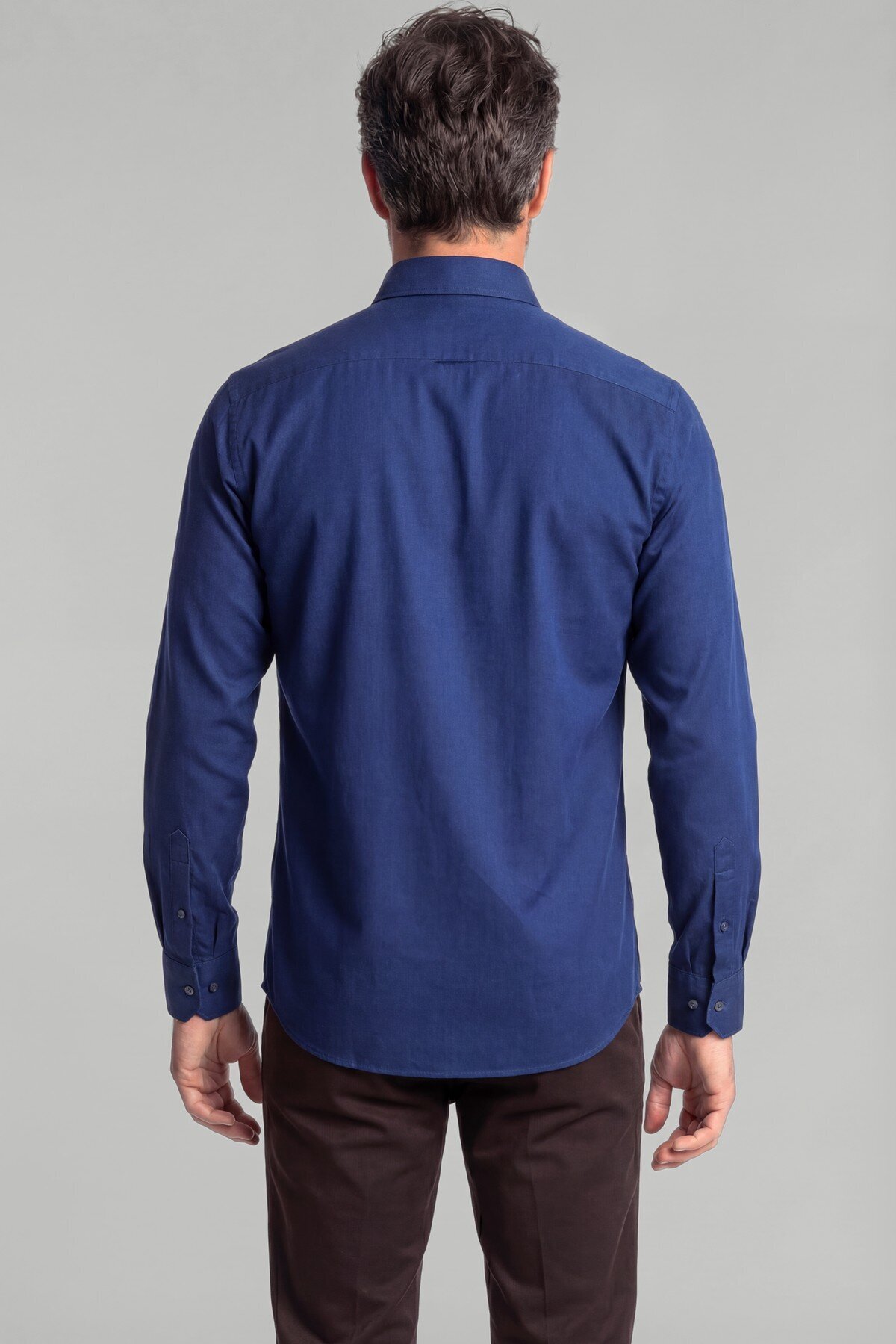 Uzun Kol Spor Yaka Tek Cep Gömlek Lacivert