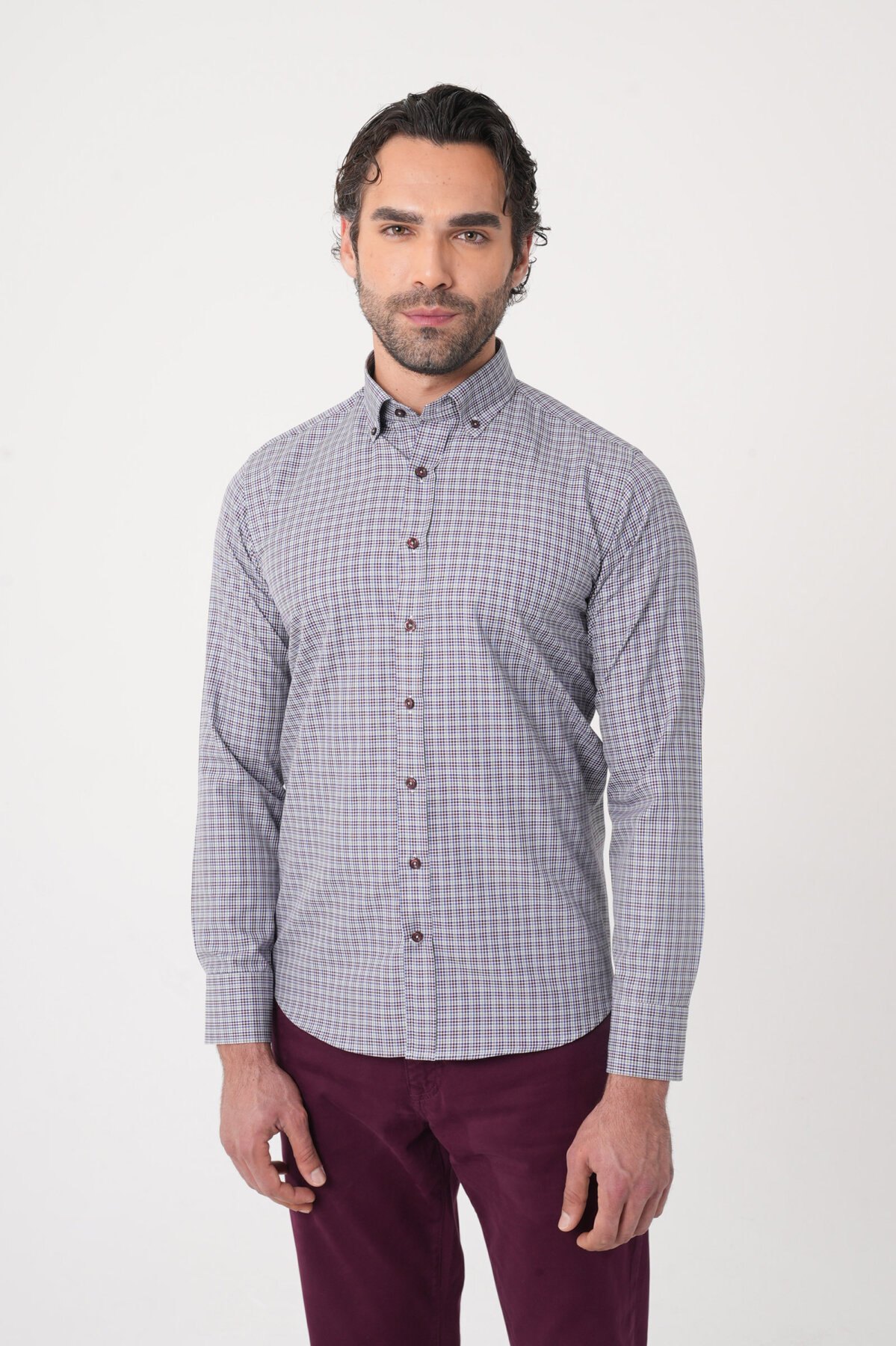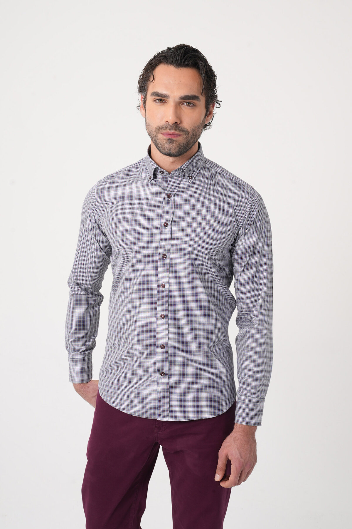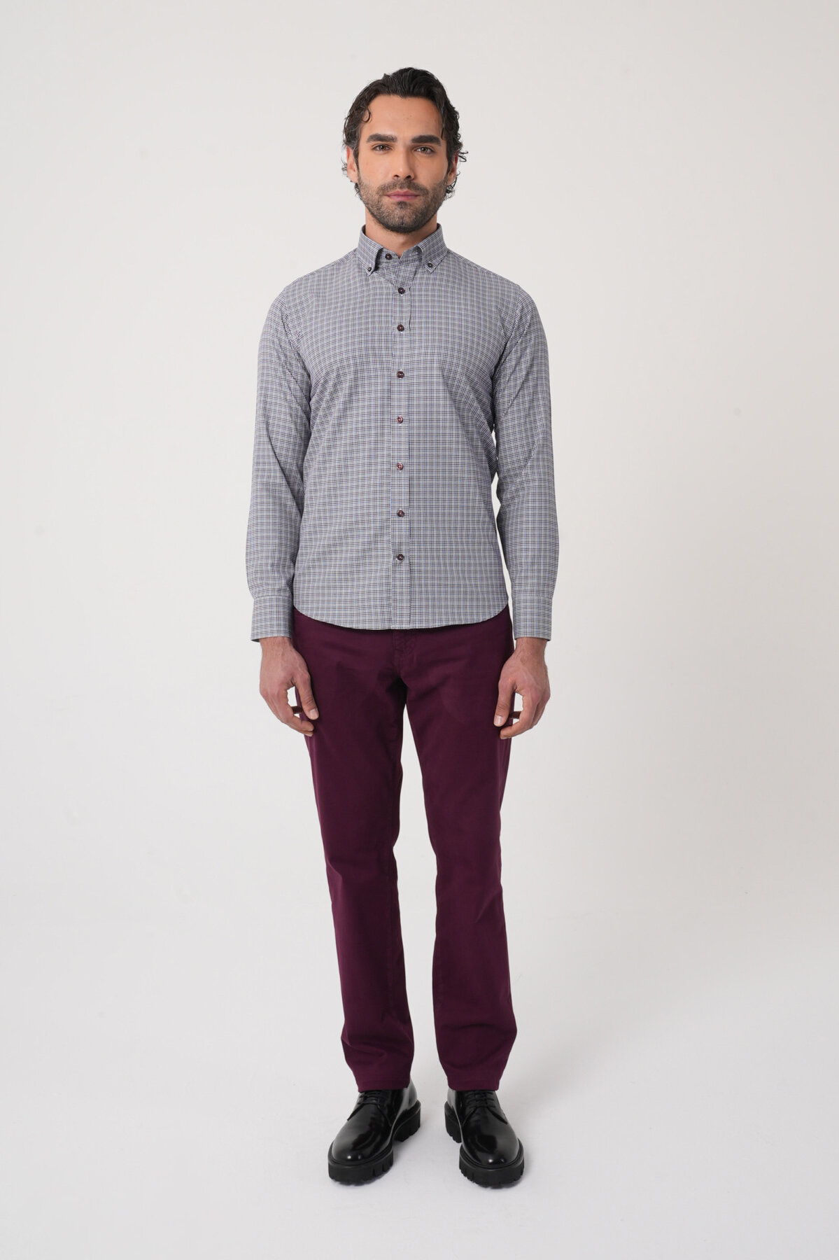 Uzun Kollu Paşa Yaka Regular Fit Erkek Gri Gömlek Gri