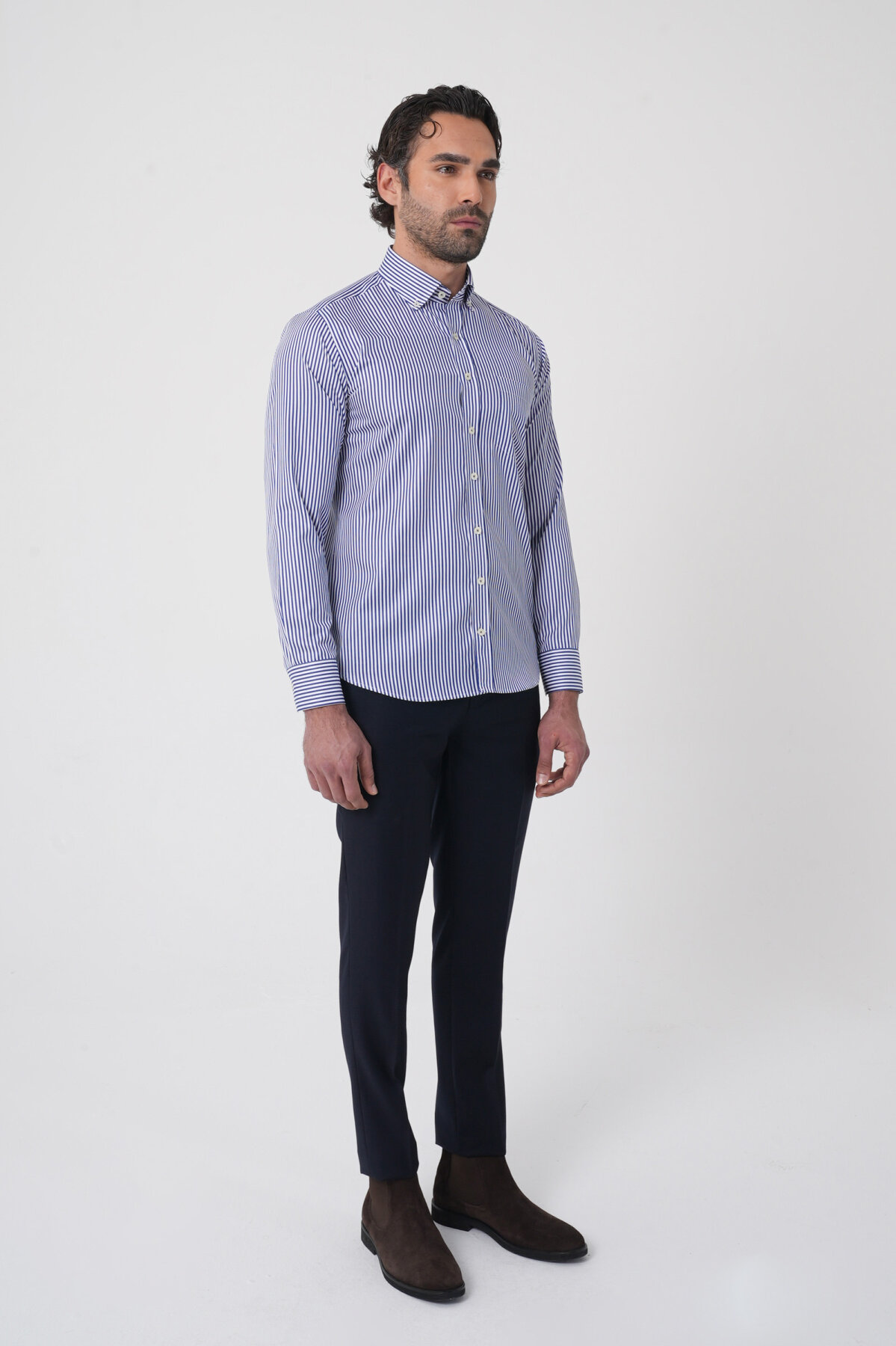 Uzun Kollu Paşa Yaka Regular Fit Erkek Lacivert Gömlek