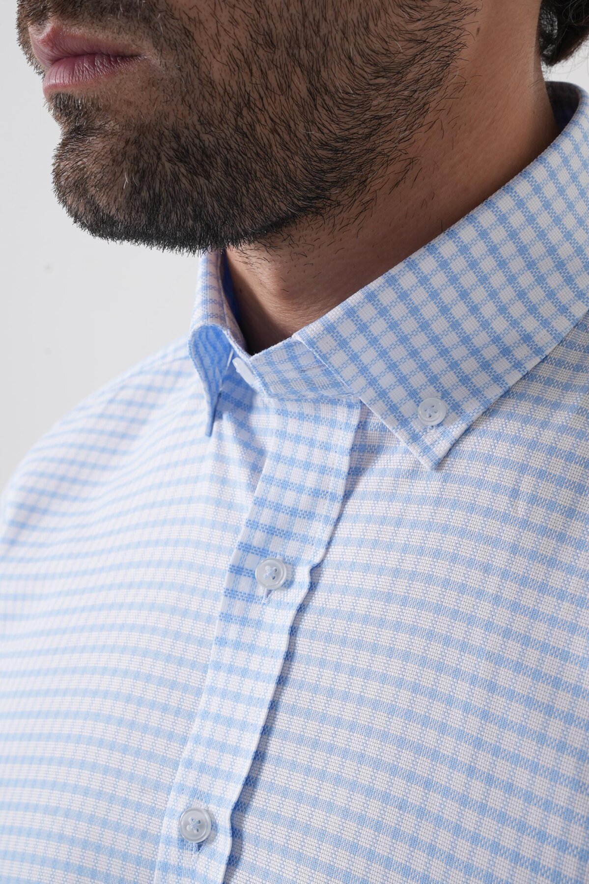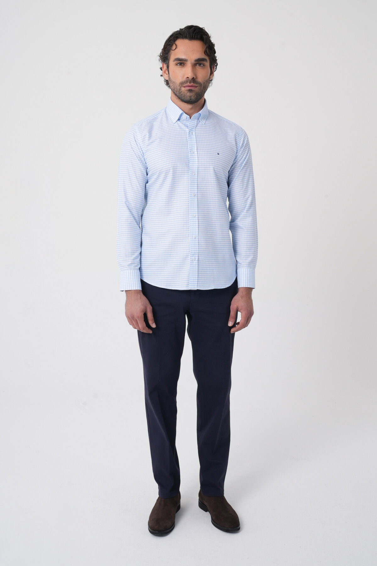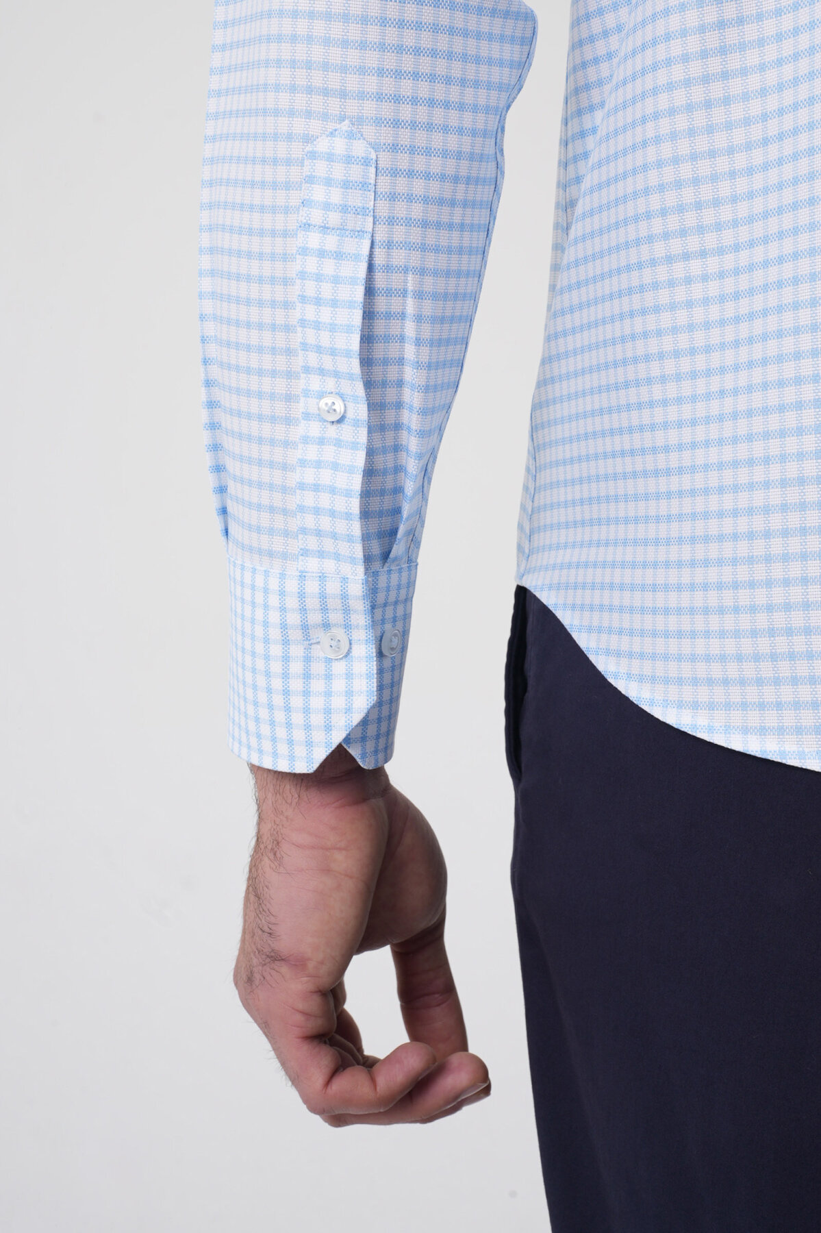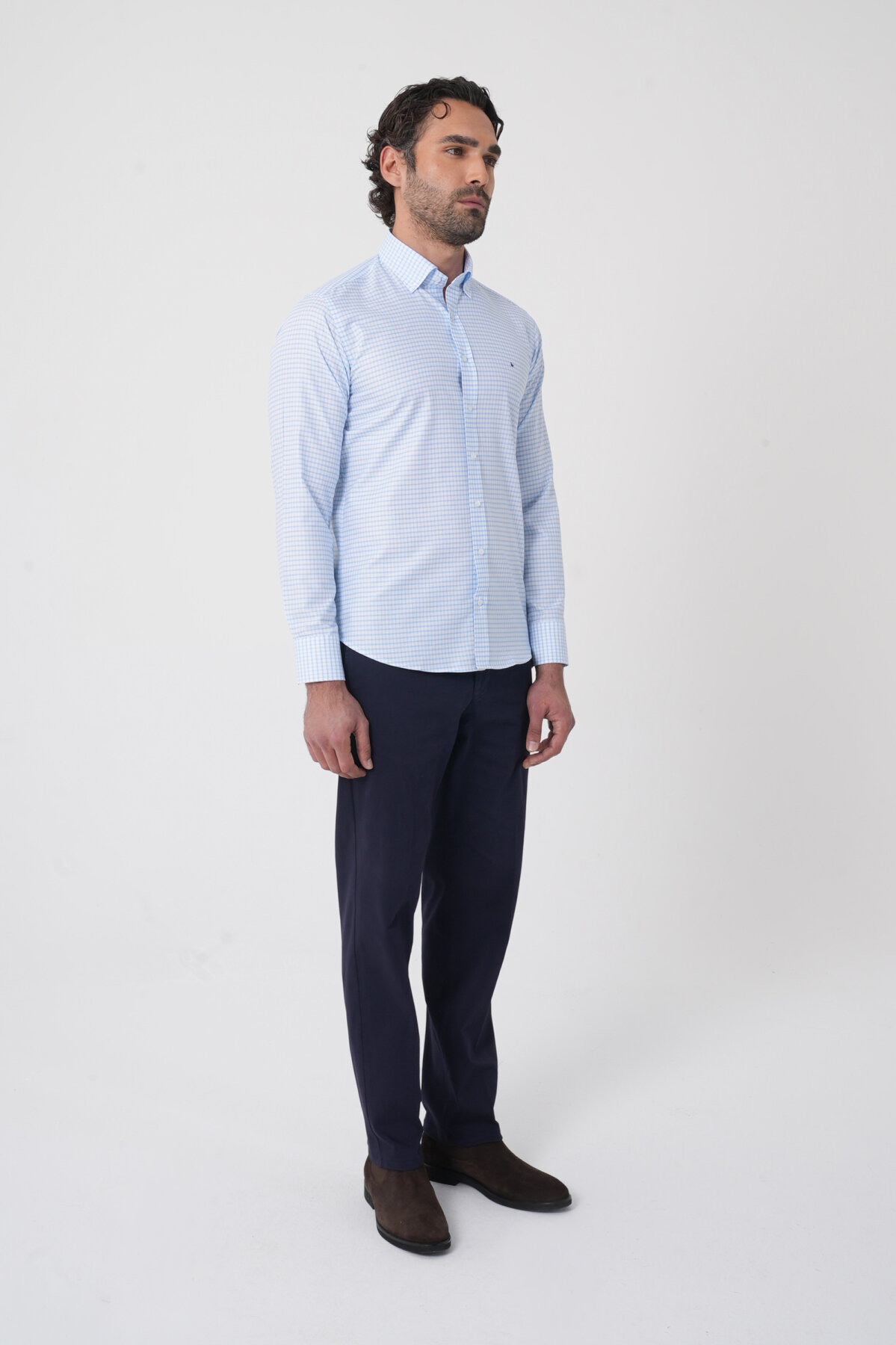 Uzun Kollu Paşa Yaka Regular Fit Erkek Mavi Gömlek