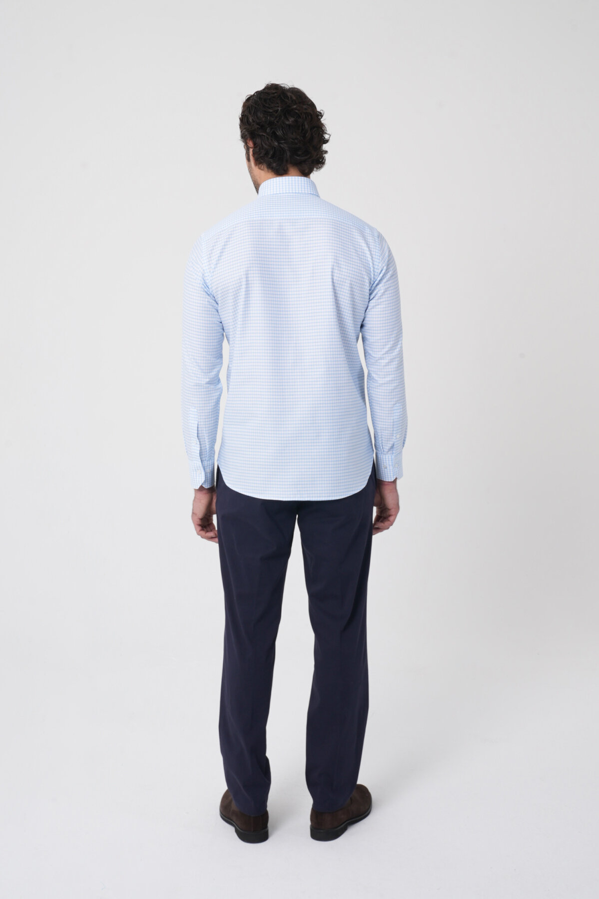 Uzun Kollu Paşa Yaka Regular Fit Erkek Mavi Gömlek Mavi