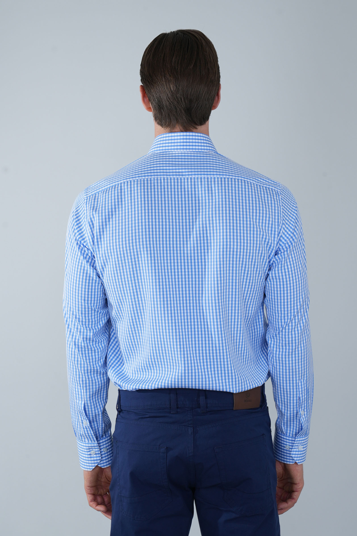 Uzun Kollu Tek Cep Mavi Pamuk Erkek Gömlek