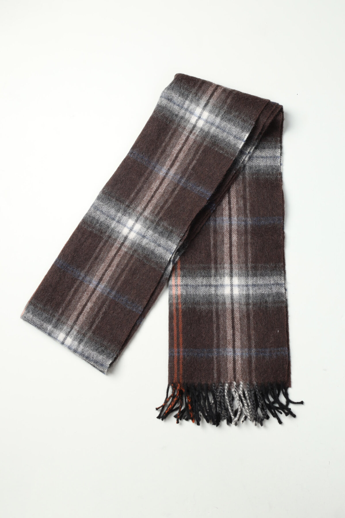 Yün Ekose Desenli Erkek Kaşkol Kahve